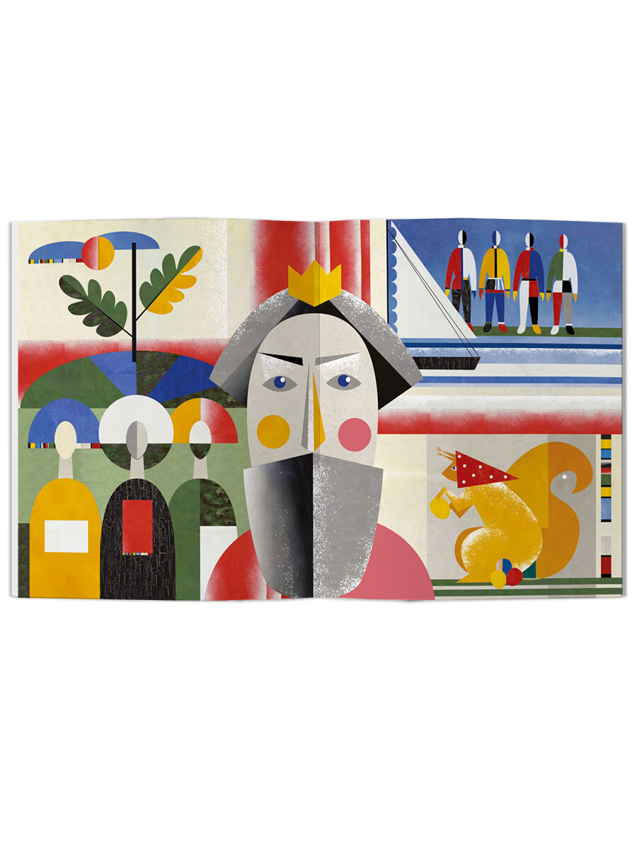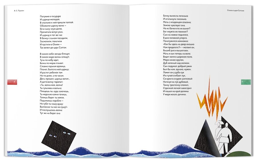 Текст любимой сказки сопровождают иллюстрации в стиле супрематиста Казимира Малевича. Его стиль, изменивший навсегда мир искусства, отлично дополняет историю о воссоединении царя Салтана и сына его Гвидона.