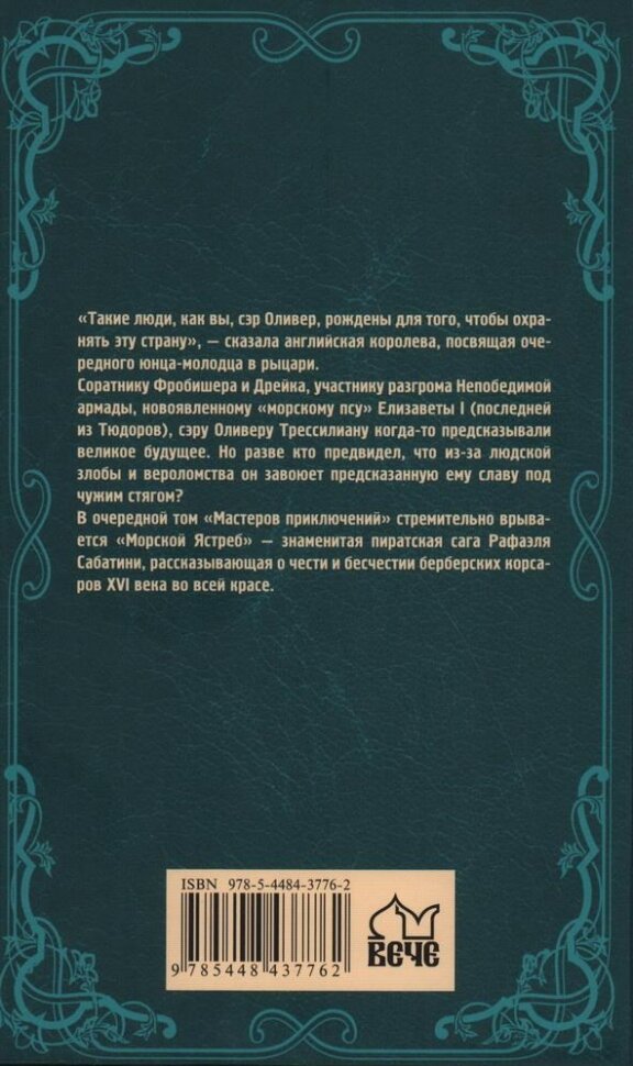 В очередной том "Мастеров приключений" стремительно врывается "Морской Ястреб" - знаменитая пиратская сага Рафаэля Сабатини, рассказывающая о чести и бесчестии берберских корсаров XVI века во всей красе.