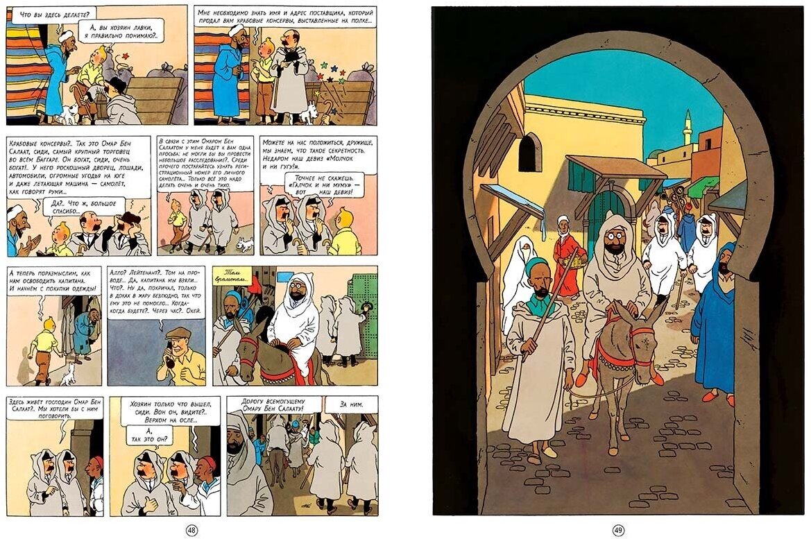 Как и писатель Перес Реверте очень люблю Тин-Тина, приобрела пока 3 : «голубой лотос», «краб с …», «сокровища красного..»-очень довольна, практически не отличаются от французских мультфильмов, только книги так приятно держать в руках, перелистывать, любоваться на полке..