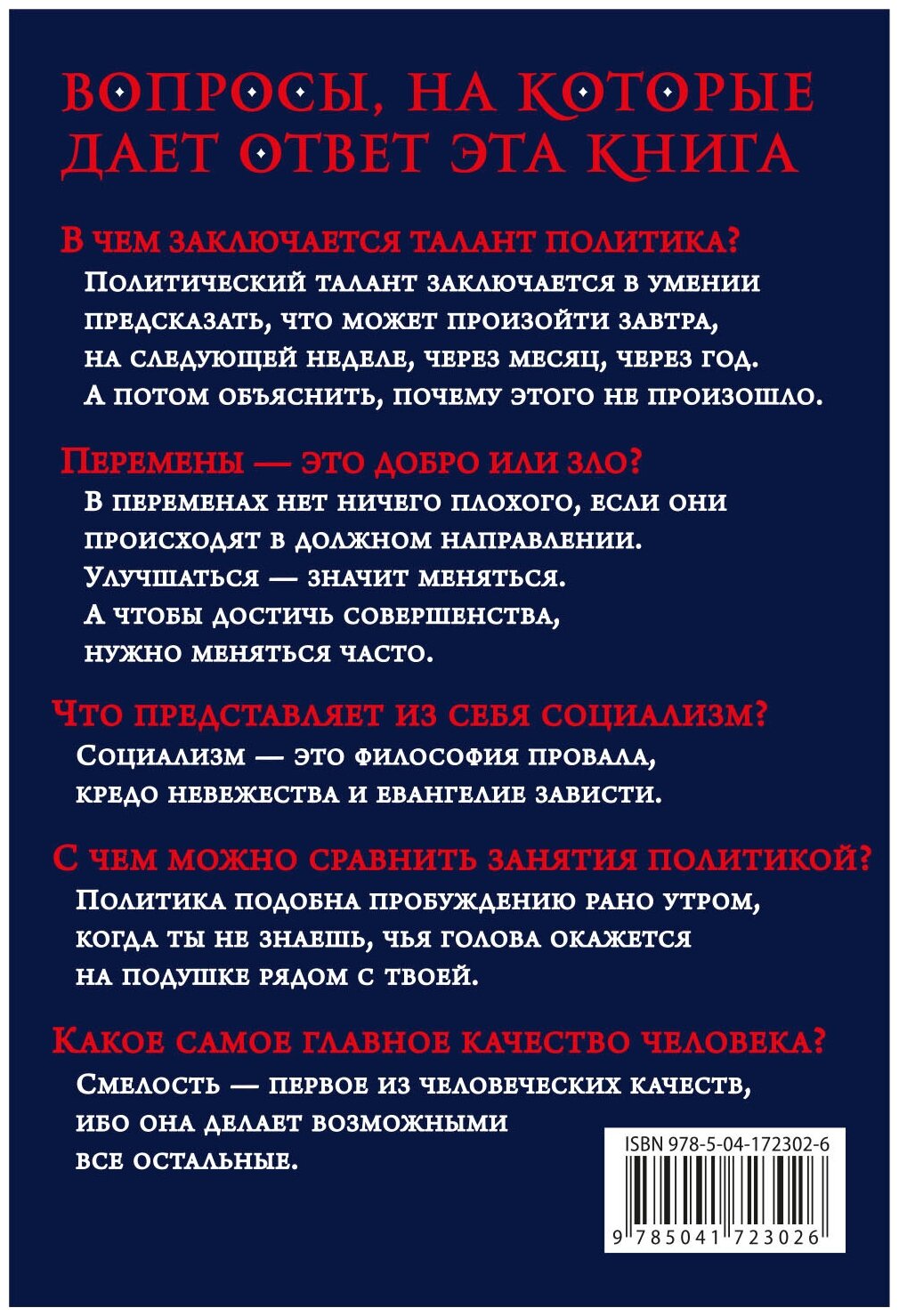 Уинстон Черчилль - великая личность! В книгу довольно интересно включены цитаты и афоризмы этого великого политика. Книга очень достойна своим содержанием и читается с большим любопытством, и конечно с интересом. Книга оформлена оригинально в формате разного шрифта, что очень удобно и наглядно при чтении. Книга имеет мягкий практичный переплет. Очень рада, что удалось купить эту книгу.