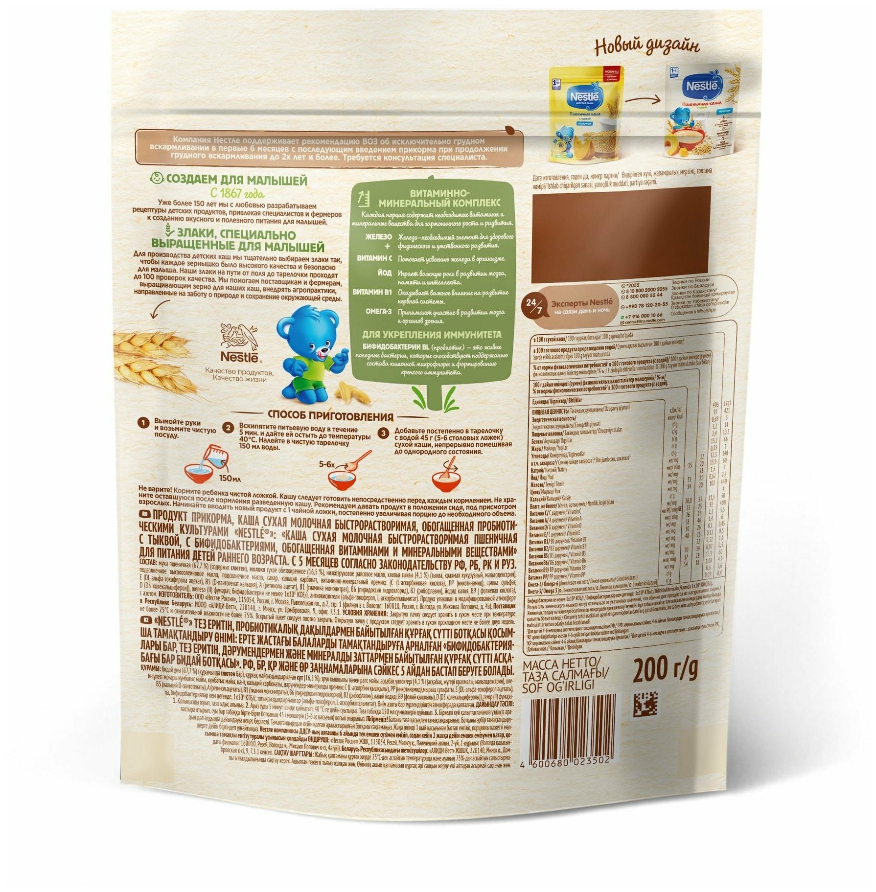 Каша Nestle Молочная пшеничная Тыква с 5 месяцев 200г Каша пшеничная Nestle Молочная с тыквой для продолжения прикорма с 5 месяцев 200 г