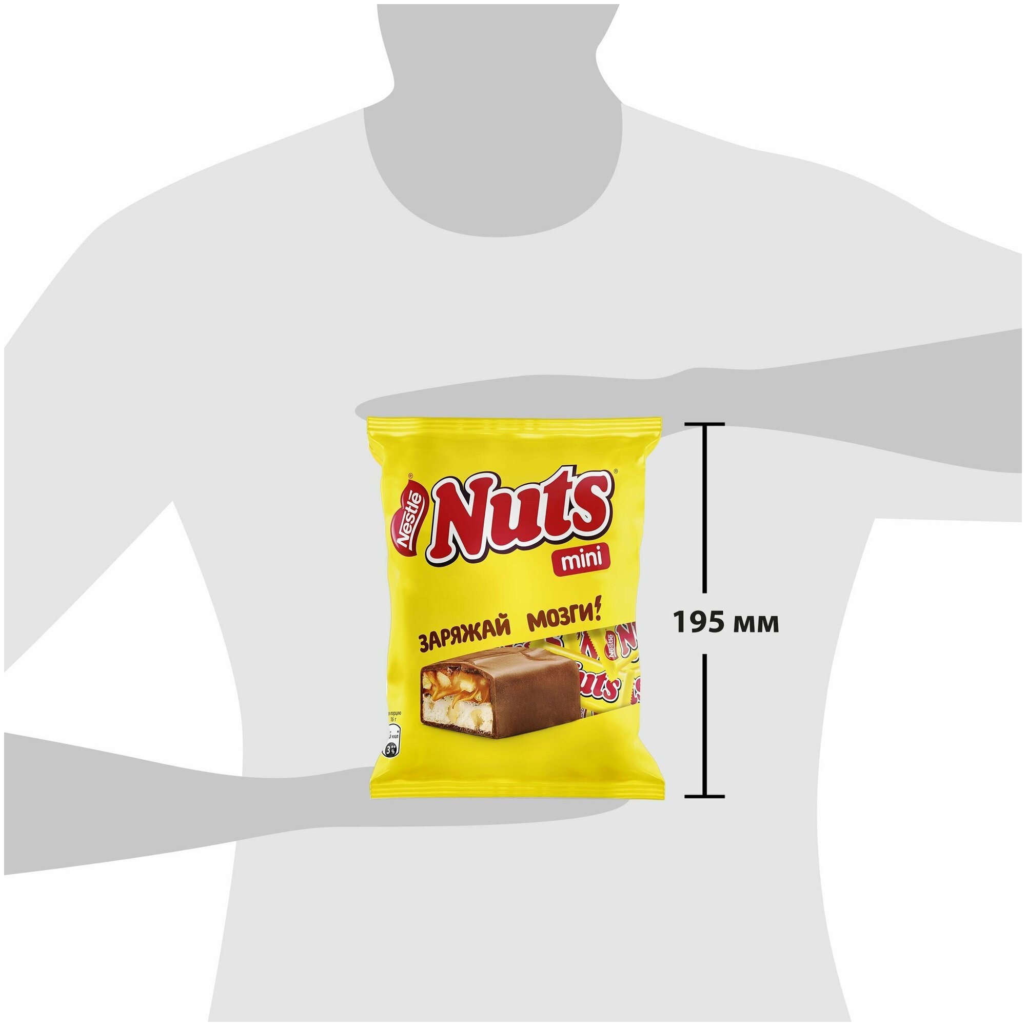 Мягкая нуга, тающая карамель и микс из фундука и арахиса, дающих энергию, бодрость и калории на длительный срок.Состав: сахар, патока, молоко сухое обезжиренное, жир специального назначения (масло пальмовое), фундук, эквивалент масла какао (масло пальмовое, масло ши), арахис, какао тертое, сыворотка молочная сухая, молочный жир, молоко сухое цельное, масло какао, эмульгаторы (лецитины, Е476), белок яичный сухой, ароматизаторы натуральные, регулятор кислотности (лимонная кислота), соль. Продукт может содержать другие орехи, глютен, диоксид серы, сою и кунжут.Срок годности: 10 месяцев.Пищевая ценность: белки (г): 5.7; жиры (г): 22; углеводы (г): 63.Условия хранения: хранить при температуре (18 ± 3) °С и относительной влажности воздуха не более 75 %.Энергетическая ценность: 477 Ккал/1998 кДж.Вес: 148 г.