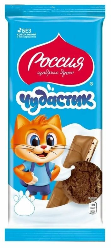 Шоколад Россия - щедрая душа Чудастик Молочный с печеньем 87г