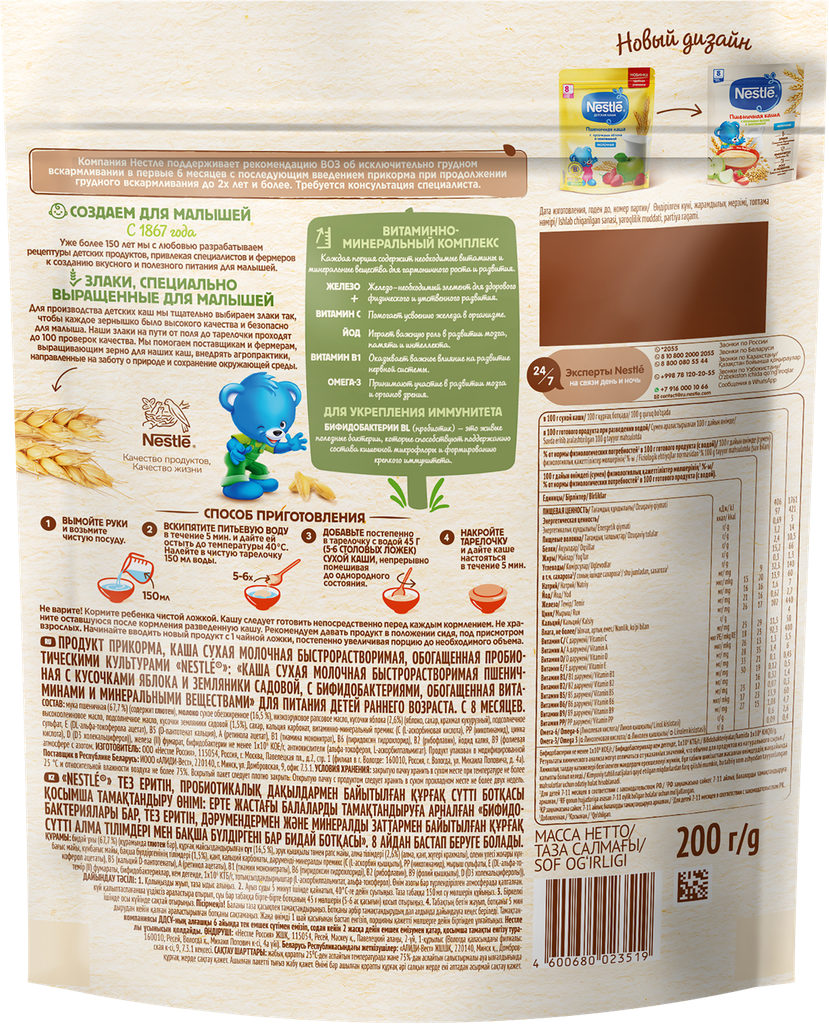 ВАЖНОЕ ПРИМЕЧАНИЕ: идеальной пищей для грудного ребенка является молоко матери. Всемирная организация здравоохранения рекомендует исключительно грудное вскармливание в первые шесть месяцев и последующее введение прикорма при продолжении грудного вскармливания. Компания Нестле поддерживает данную рекомендацию. Для принятия решения о сроках и способе введения данного продукта в рацион ребенка необходима консультация специалиста.