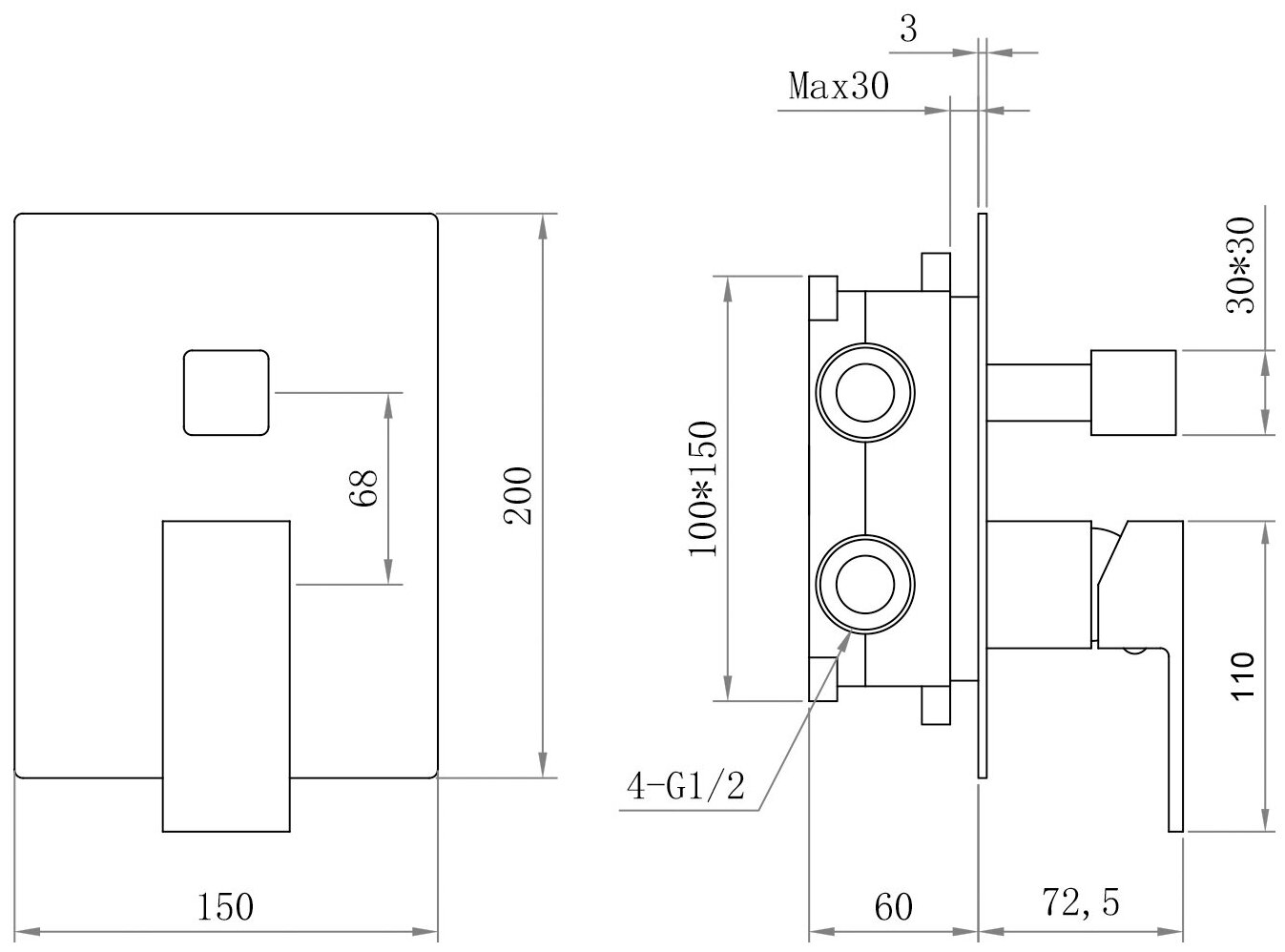 | Оснащение | душевая лейка, кронштейн для верхнего душа, держатель для душа, душевой шланг, смеситель |