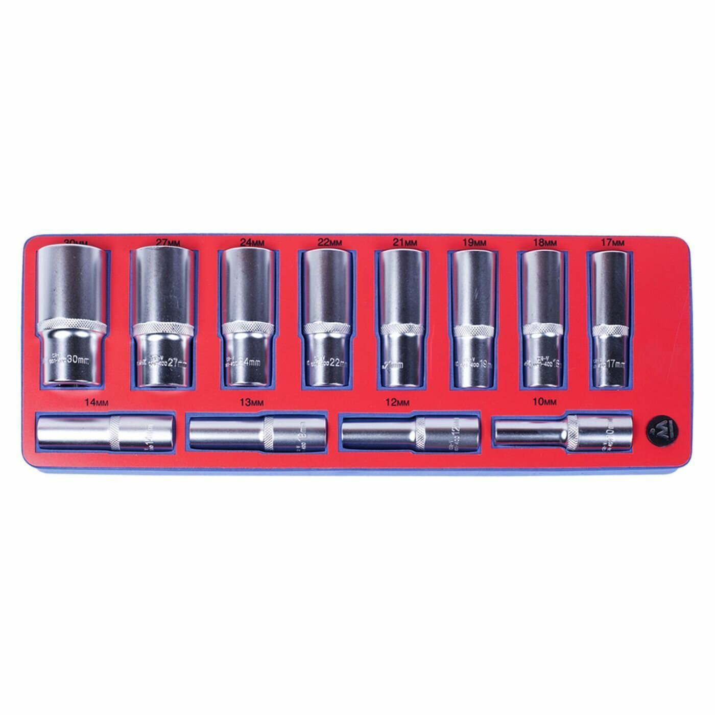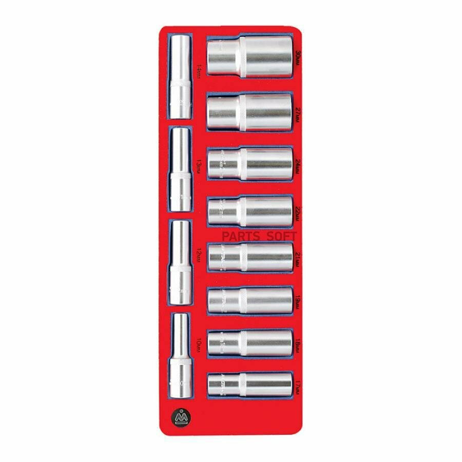 Набор инструментов 12 предметов глубокие торцевые головки с присоединительным квадратом 1/2 дюйма в ложементе из материала EVA предназначен для комплектации передвижных инструментальных тележек или слесарных верстаков при создании индивидуальных рабочих мест на станциях технического обслуживания автомобилей и других предприятиях, занимающихся обслуживанием и ремонтом различной техники.