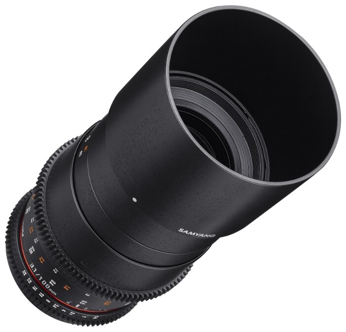 Высококачественный объектив Samyang 100mm T3.1 ED UMC Macro VDSLR займет достойное место в вашем наборе инструментов для профессиональной видеосъемки. Макро- возможности объектива позволяют получить масштаб 1:1 и проводить съемку с расстояния 30.7см, делая его достойным инструментом даже для научных нужд. Кольца фокусировки и установки диафрагмы имеют стандартную резьбу с модулем 0.8мм, что позволяет использовать этот объектив с системами фоллоу-фокус.