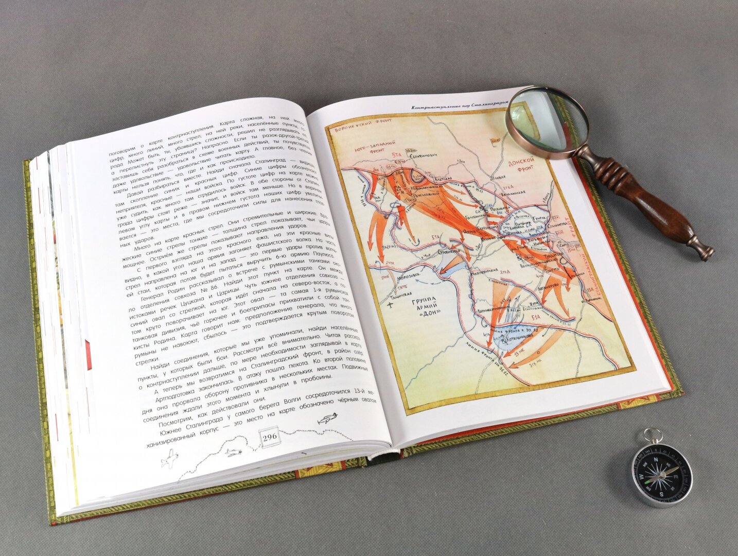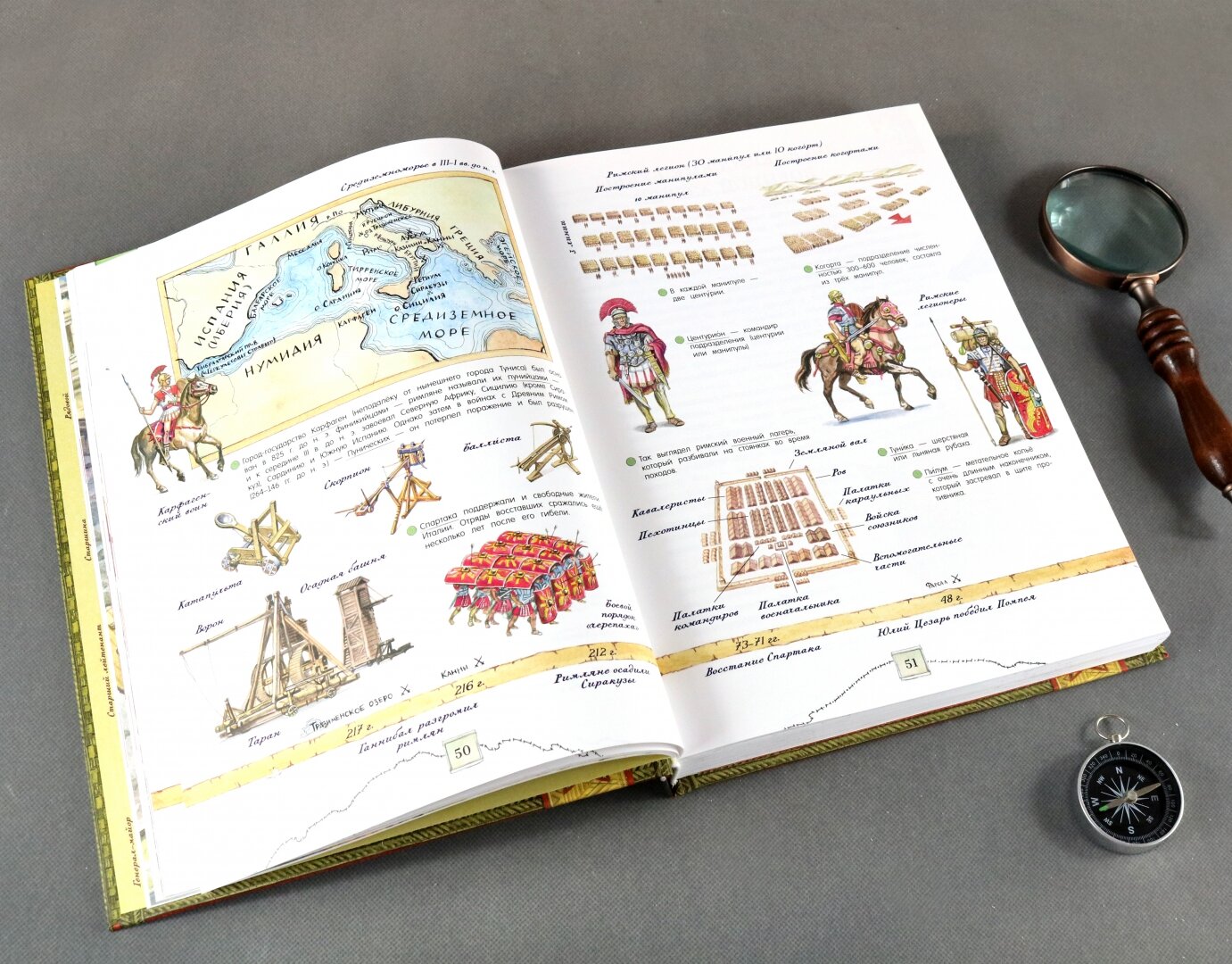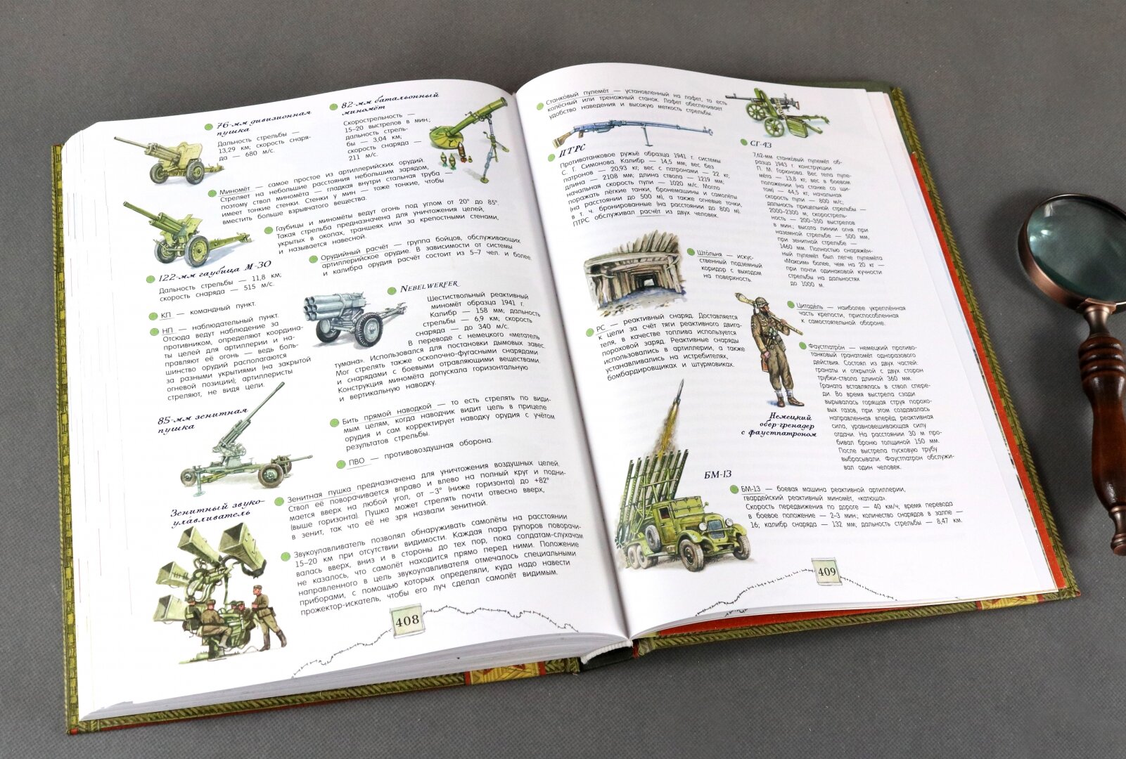 Что меня поразило сначала - это вес книги. Одной рукой ее поднять или удержать сложно. Выглядит она как настоящий музейный артефакт. На развороте погоны солдат и офицеров Советской и Российской армии. Внутри рассказ о военном искусстве сквозь века эпохи и битвы. Очень интересно сделана система сносок и ссылок на визуальный словарь. Следите за специальными стрелочками на полях. Иллюстраций много, чем-то они напоминают мне стиль незабвенных детских энциклопедий "Аванты", помните, такие были раньше? В самом конце сюрприз - плакат в конверте.