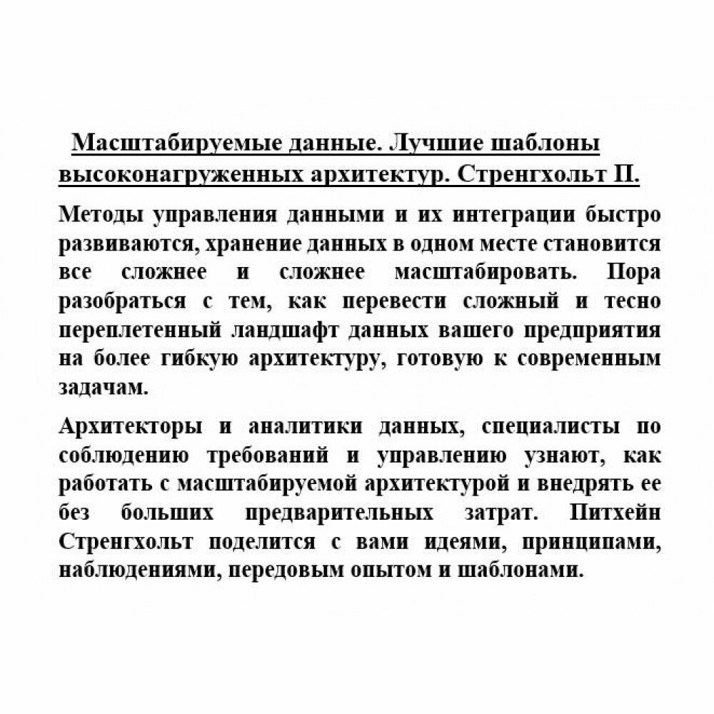 Масштабируемые данные. Лучшие шаблоны высоконагруженных архитектур (Питхейн Стренхольт); Питер (Айлиб), 2020