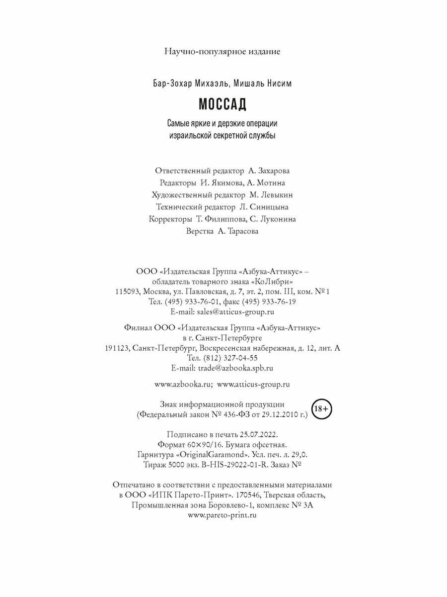 Моссад Самые яркие и дерзкие операции израильской секретной службы (Бар-Зохар Михаэль , Мишаль Нисим (соавтор)); КоЛибри, 2022