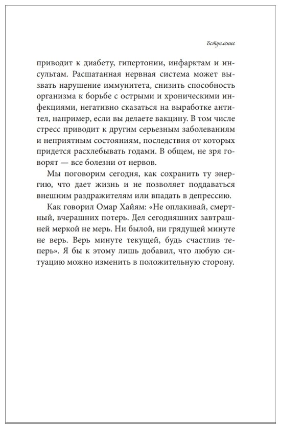 Передачу “О самом главном” смотрим всей семьей и любим доктора Мясникова. Поэтому вопрос о том, купить ли книгу “Восстановление нервной системы”, даже не стоял! Тем более, что и мы сами уже люди “в самом расцвете сил”, и родители еще с нами, и хочется и нам, и им жить полноценной здоровой жизнью. Книга очень понравилась: простая, но очень актуальная, слог понятный и доступный даже тем, кто далек от медицины и не хочет тонуть в терминологии. Все для простых людей. Очень советую книгу особенно женщинам после 40, все грамотно и четко. И конечно, рекомендации доктора — отдельное спасибо!