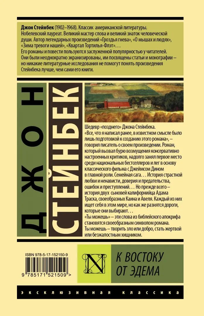 Это книга не просто о добре и зле внутри каждого из, но и том, что зло вполне может порождаться изначально добрыми желаниями. Один из сыновей желает быть любимым и значимым для своего отца, поэтому пытается, как может, привлечь его внимание. Я думаю, что это лучшая работа Стейнбека. Как он сам верно отметил, у каждого автора есть только одна, та самая единственная книга, а всё остальное творчество – это только подготовка к этой книге.