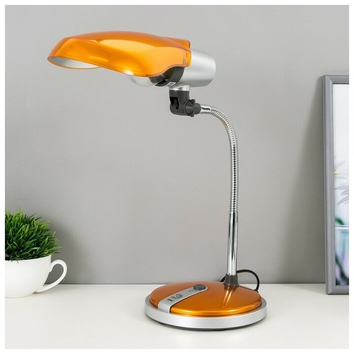 Эра Лампа настольная 15Вт E27 Оранжевый Светильник предназначен для использования с лампочкой КЛЛ или LED диаметром не больше 42мм, с цоколем E27, мощностью до 15Вт. Выключатель находится на основании светильника, основание устойчивое. Гибкая стойка светильника наклоняется в любую сторону, что позволяет регулировать угол падения света. Положение плафона также можно отрегулировать и зафиксировать с помощью винта. Плафон вращается вокруг основания с цоколем.