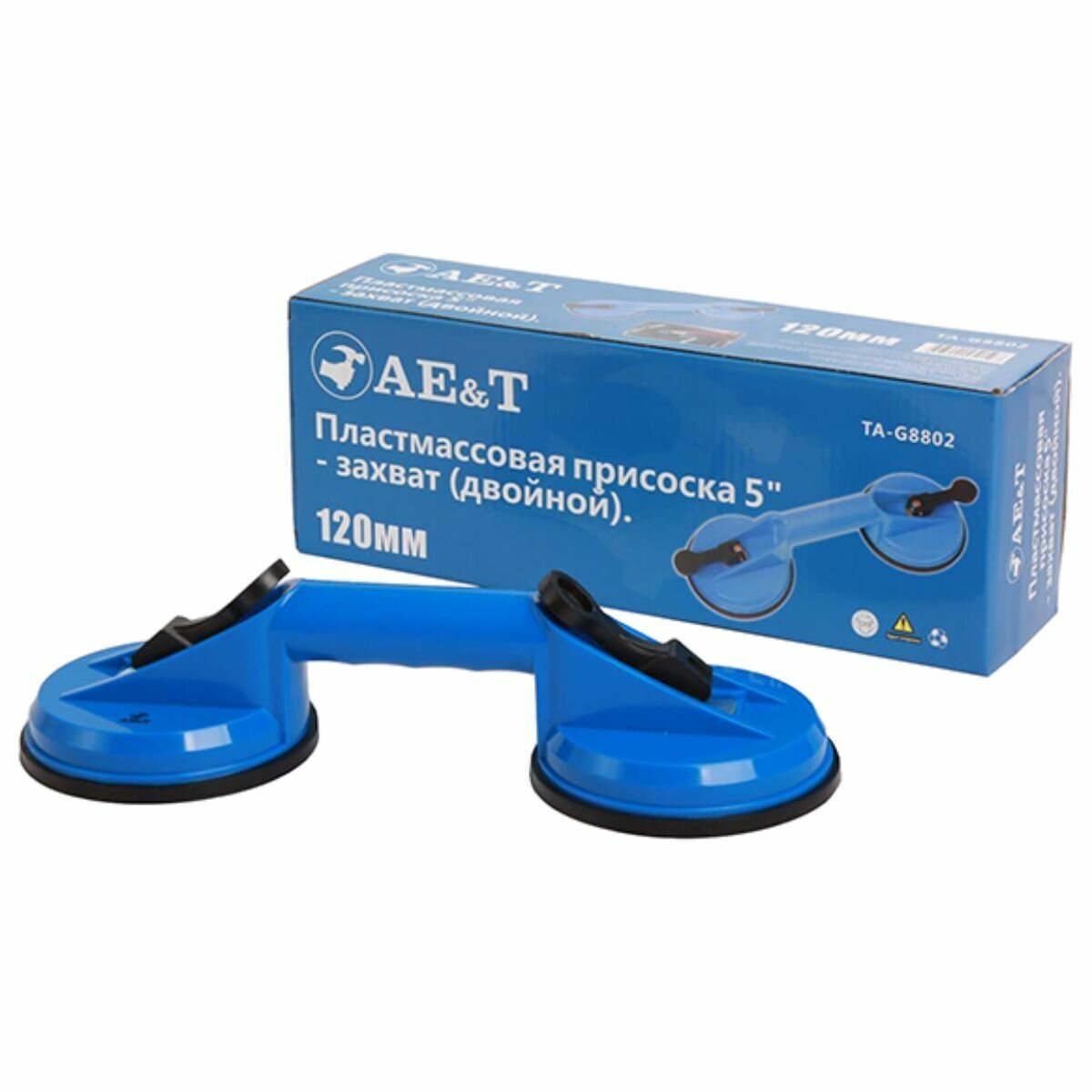 Двойная присоска представляет собой захват для фиксации и переноски стекол и иных гладких плоских материалов.