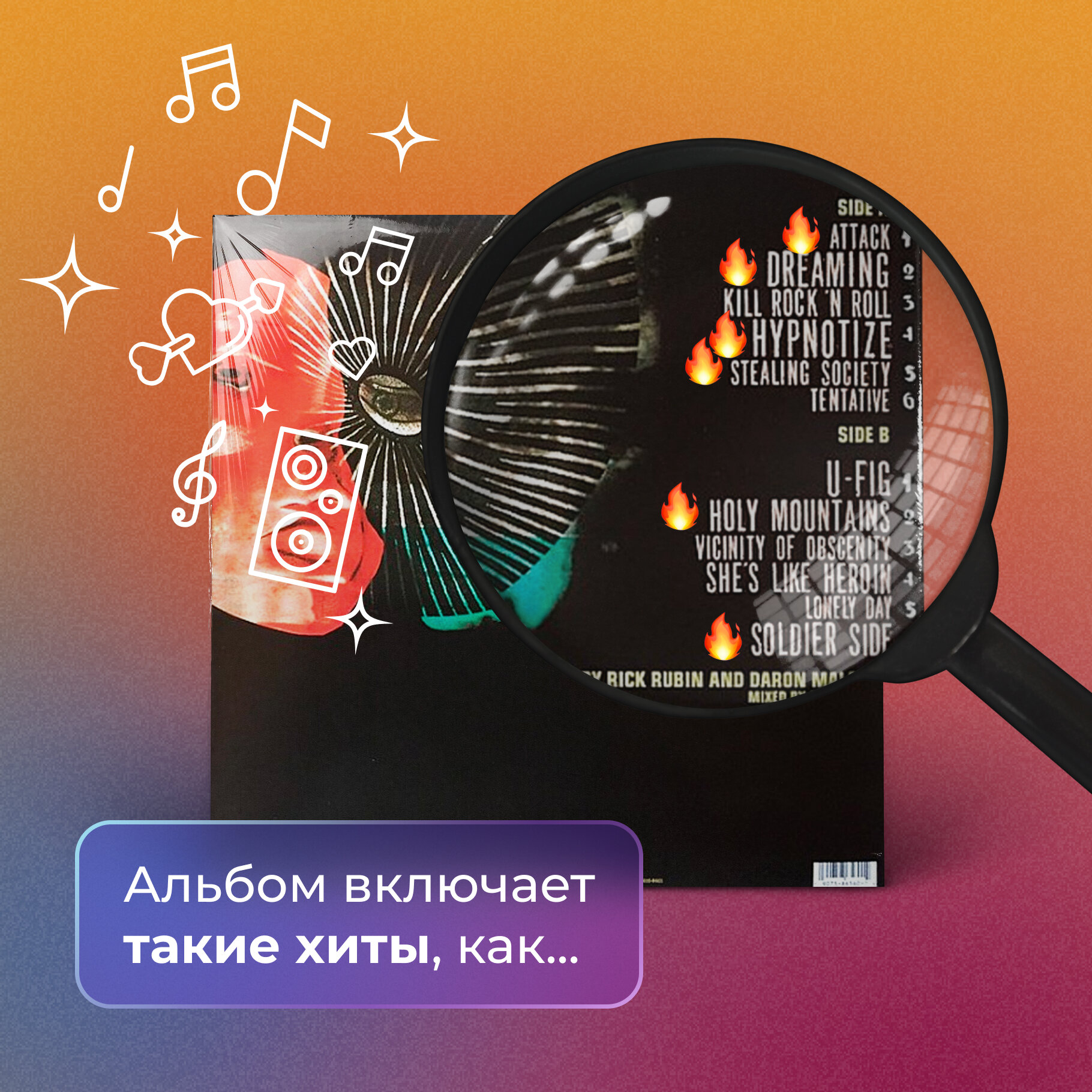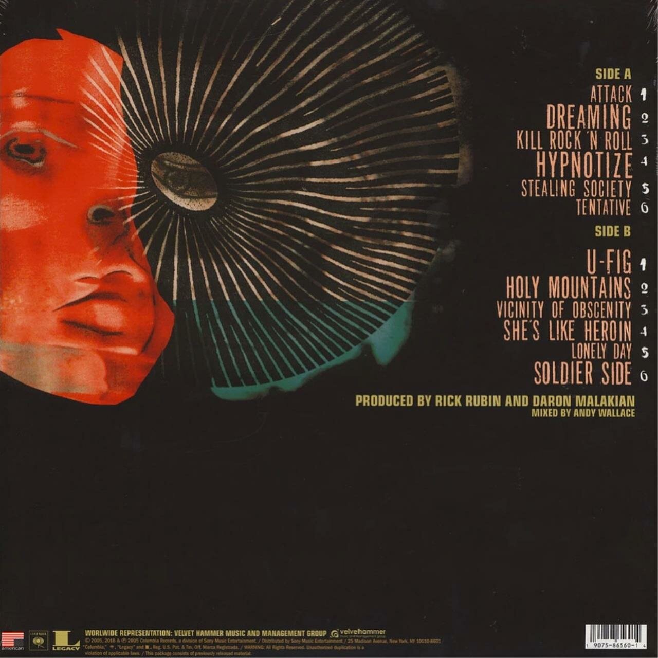 Список композиций:A1 Attack A2 Dreaming A3 Kill Rock 'N Roll A4 Hypnotize A5 Stealing Society A6 Tentative B1 U-Fig B2 Holy Mountains B3 Vicinity Of Obscenity B4 She's Like Heroin B5 Lonely Day B6 Soldier Side Компании и т. п. Phonographic Copyright (p) – Columbia Copyright (c) – Columbia Distributed By – Sony Music Entertainment Published By – Sony/ATV Songs LLC Published By – Malakian Publishing Published By – Stunning Suppository Sounds Published By – Shattered Mirrors Publishing Published By – Dolmayan Publishing Published By – Sony / ATV Music Publishing Recorded At – The Mansion Recorded At – Akademie Mathematique of Philosophical Sound Research Mixed At – Enterprise Studios Mixed At – Soundtrack Studios Mastered At – Sony Music Studios, New York City Record Company – Sony Music Entertainment Pressed By – Record Industry – 24217 Над релизом работали Arranged By [String Arrangement] – Mark Mann*, Serj Tankian Artwork – Vartan Malakian Bass – Shavo Odadjian Coordinator [Album Production Coordinator] – Braden Asher, Lindsay Chase Design – Brandy Flower, System Of A Down Drums – John Dolmayan Edited By – Dana Nielsen, Jason Lader Engineer – David Schiffman Engineer [Assistant] – Phillip Broussard Engineer [Mix Assistant, Enterprise Studios] – Joe Peluso Engineer [Mix Assistant, Soundtrack Studios] – Steve Sisco Engineer [Mix Protools] – John O'Mahony Guitar, Vocals – Daron Malakian Management [Worldwide Representation] – Velvet Hammer Music And Management Group Mastered By – Vlado Meller Mixed By – Andy Wallace Producer – Daron Malakian, Rick Rubin Vocals, Keyboards – Serj Tankian