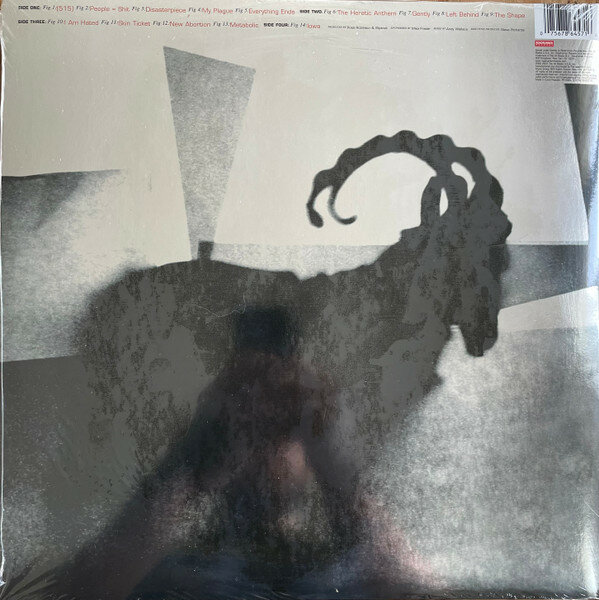 Второй студийный альбом американской метал-группы. Это один из самых мрачных и агрессивных альбомов в их дискографии, который закрепил за Slipknot статус лидеров ню-метал сцены и вывел их на международный уровень. Виниловая пластинка отражает темные, хаотичные эмоции участников группы, многие из которых на момент записи боролись с личными проблемами, такими как депрессия и злоупотребление алкоголем.Процесс записи альбома был непростым: участники группы находились в состоянии сильного психологического и физического истощения. Однако это только усилило интенсивность и агрессию звучания. Альбом записывался в уединённой ферме в Айове, что добавило его звучанию еще больше мрачности и изоляции. Продюсер Росс Робинсон даже получил травму во время сессий, но продолжал работать, что ещё больше увеличивало накал страстей.В LP активно использовались нестандартные приёмы записи. Например, участники группы задействовали элементы индустриального шума, нестандартные звуковые эффекты и даже добавляли эксцентричные перкуссионные инструменты, такие как бочки и цепи, что придало звучанию уникальный индустриальный оттенок.Iowa получил признание как один из важнейших альбомов ню-метала. Он был номинирован на премию Grammy за лучшее метал-исполнение за трек "Left Behind".Этот винил — настоящий подарок для любителей экстремальной и тяжелой музыки, который поможет окунуться в тёмный и необузданный мир Slipknot.