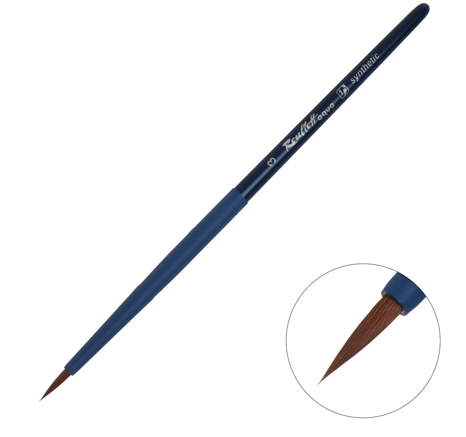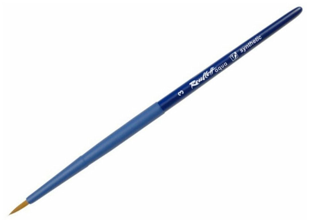 Кисть синтетика круглая Roubloff "Aqua Blue" ручка короткая синяя покрытие обоймы soft-touch Aqua Blue №3 - круглая коричневая синтетика, ручка soft touch