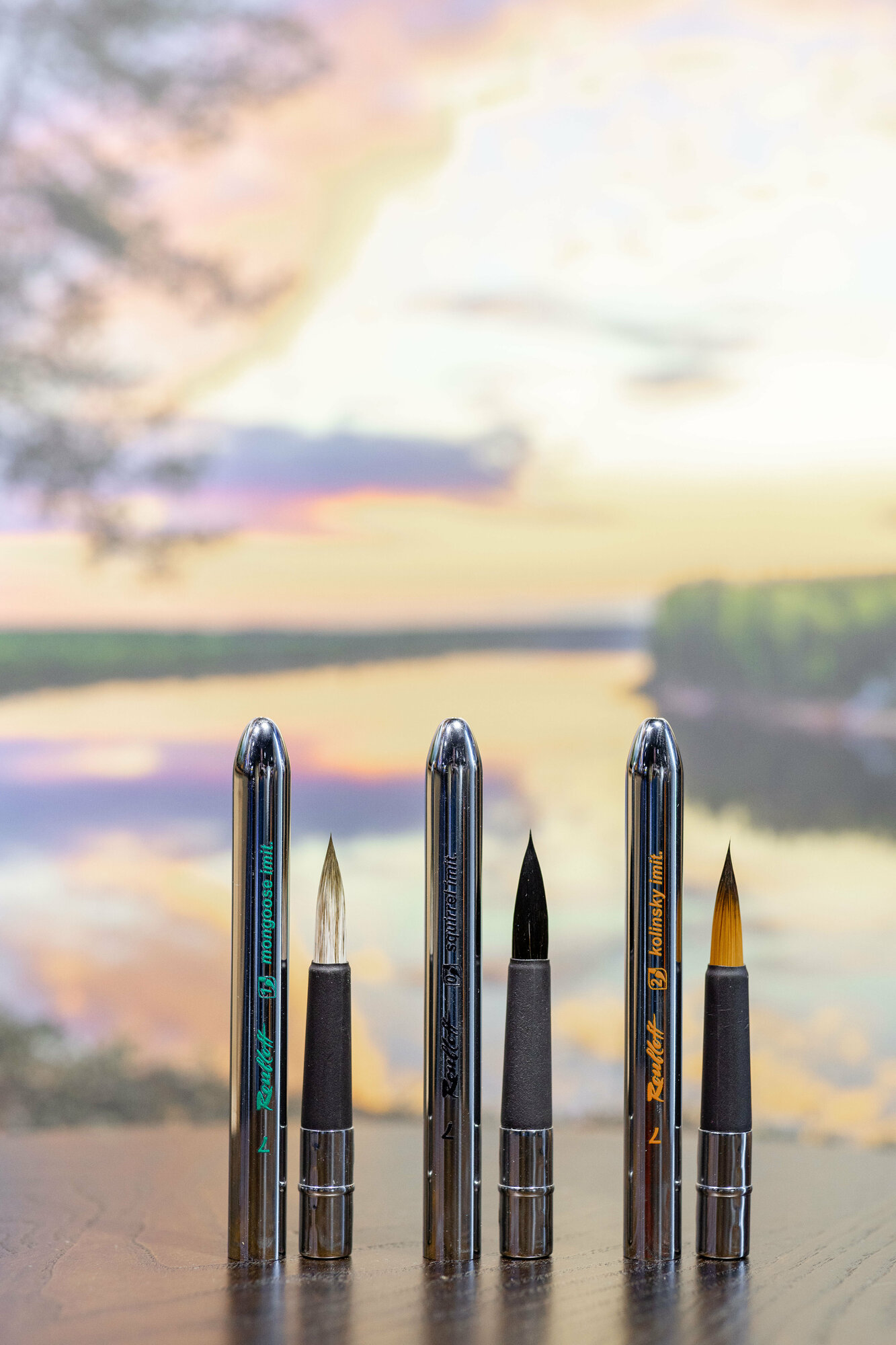 Производство: изготавливаются под брендом Roubloff, который был основан в 1988 году в Кировской области (Россия). Кировская область – один из центров народных промыслов в России. Здесь же занимаются разведением пушных зверей, чей мех является идеальным материалом для кистей. Продукция бренда Roubloff – кисти самого разного назначения, размера и формы. Весь материл, используемый при производстве продукции, проходит отбор, чтобы каждый клиент получил лучшие кисти для своих работ. Кисти марки Roubloff являются одними из лучших в России.