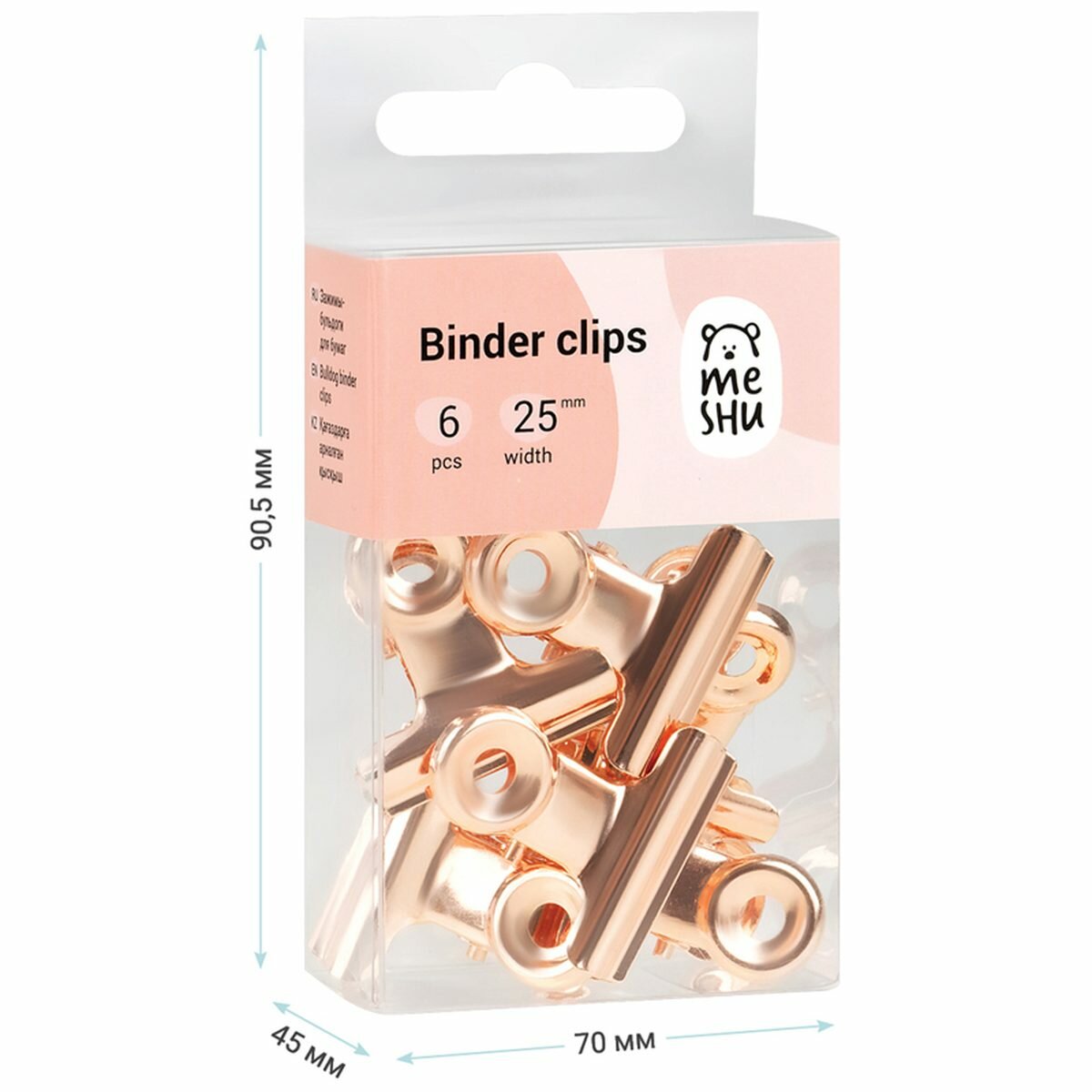 Зажимы-бульдоги для бумаг Meshu "Rose Gold" 6 шт 25 мм бокс с европодвесом (MS_41601)