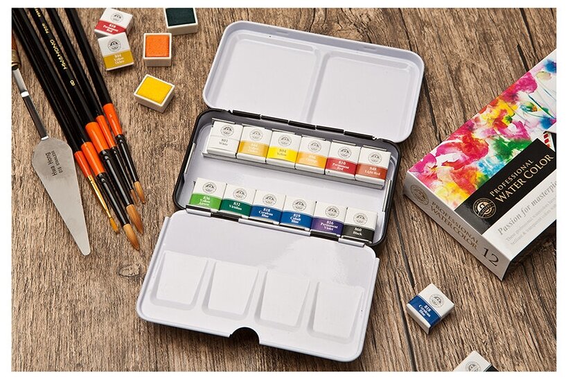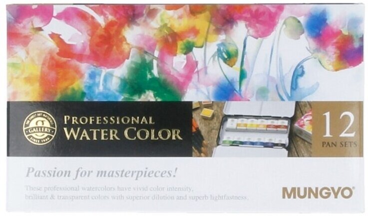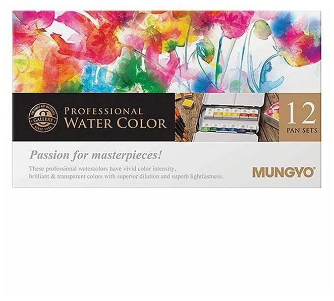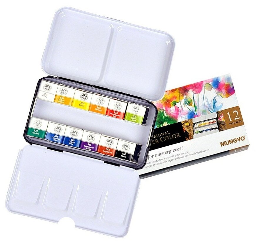 Набор акварели Mungyo "Gallery" 12 цв мал. кюветы в металлической коробке (MGMWPH12)