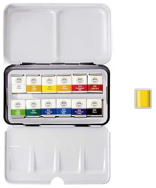 В наборе: 12 цвета в кюветах стандартного размера. Цвета в наборе: 801, 844, 804, 806, 810, 836, 832, 818, 819, 816, 848, 860. Подробную выкраску с номерами цвета смотрите на дополнительном фото.