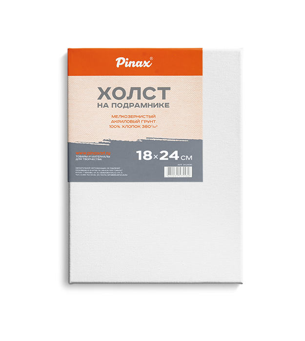 Холст на подрамнике Pinax. В ассортименте имеются холсты разного размера. 100% хлопок. Плотность 380 г/м2. Мелкозернистое полотно. Тройное покрытие акриловым грунтом. Хлопок - доступное решение для начинающих художников и любителей. Предназначены для масляной живописи, акрила, темперы и смешанных техник.