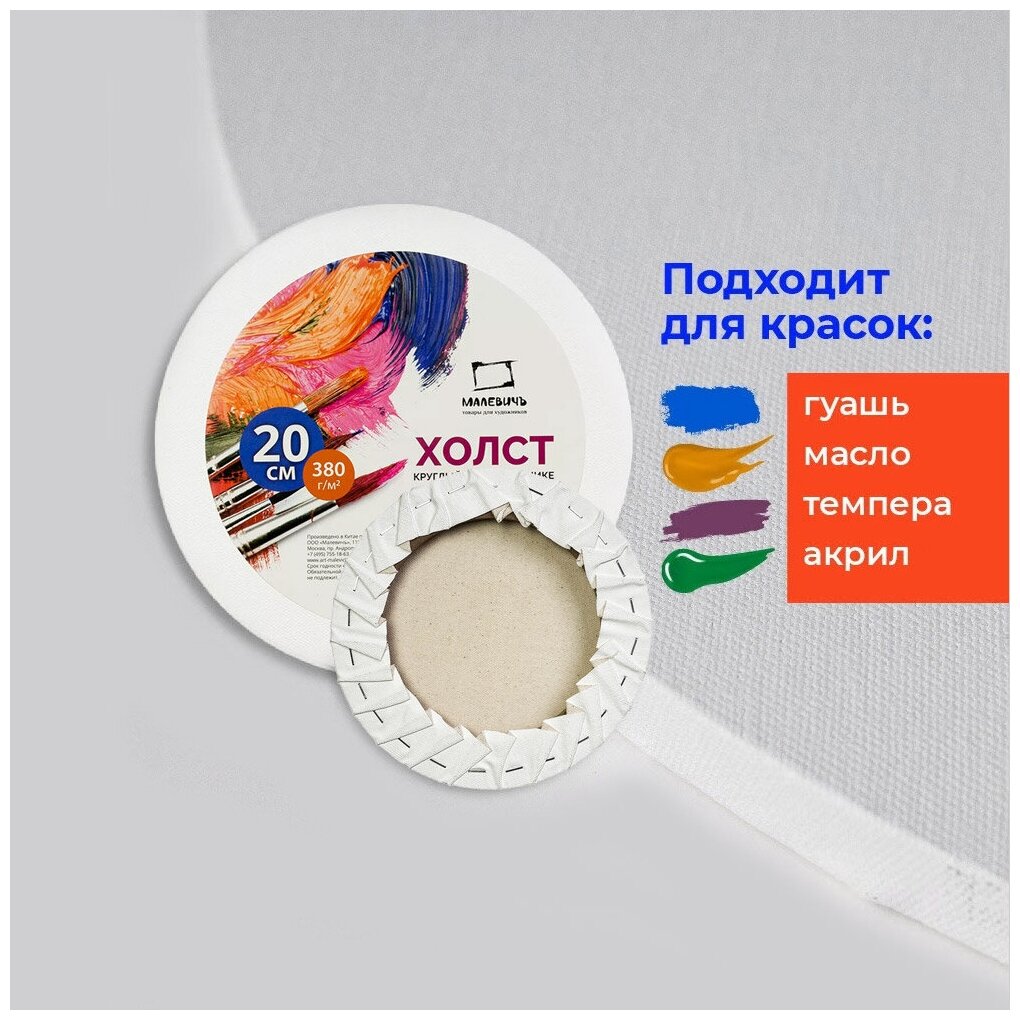 Холст на подрамнике грунтованный круглый Малевичъ 380 г хлопок (МЛ-200020)