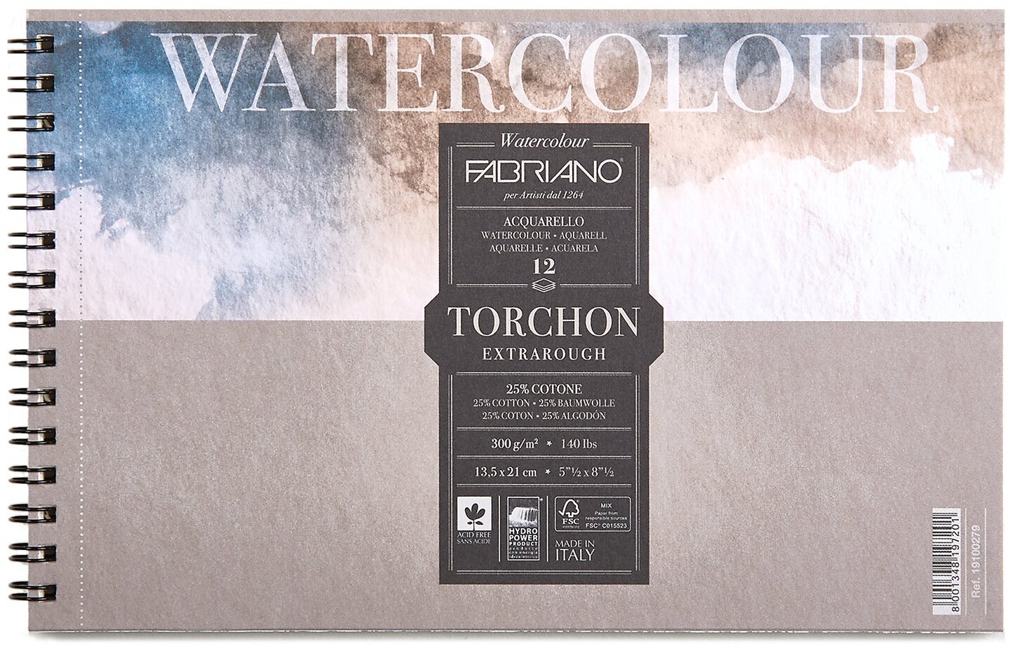 Альбом для акварели на спирали Fabriano "Watercolour studio Torchon" 135х21 см 12 л 300 г (19100279) (размер: 135x210)