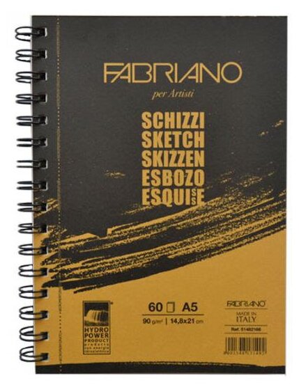 Блокнот для эскизов на спирали Fabriano "Schizzi" А5 60 л 90 г. по длин. стор. (51482166) (размер: 148x210)