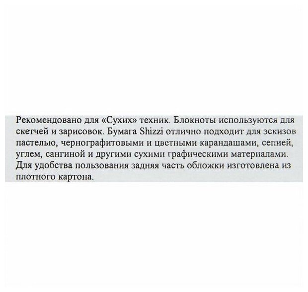 Применение: блокноты используются для скетчей и зарисовок. Подходят для выполнения работ чернографитовыми и цветными карандашами, пастелью, углем и другими сухими графическими материалами.