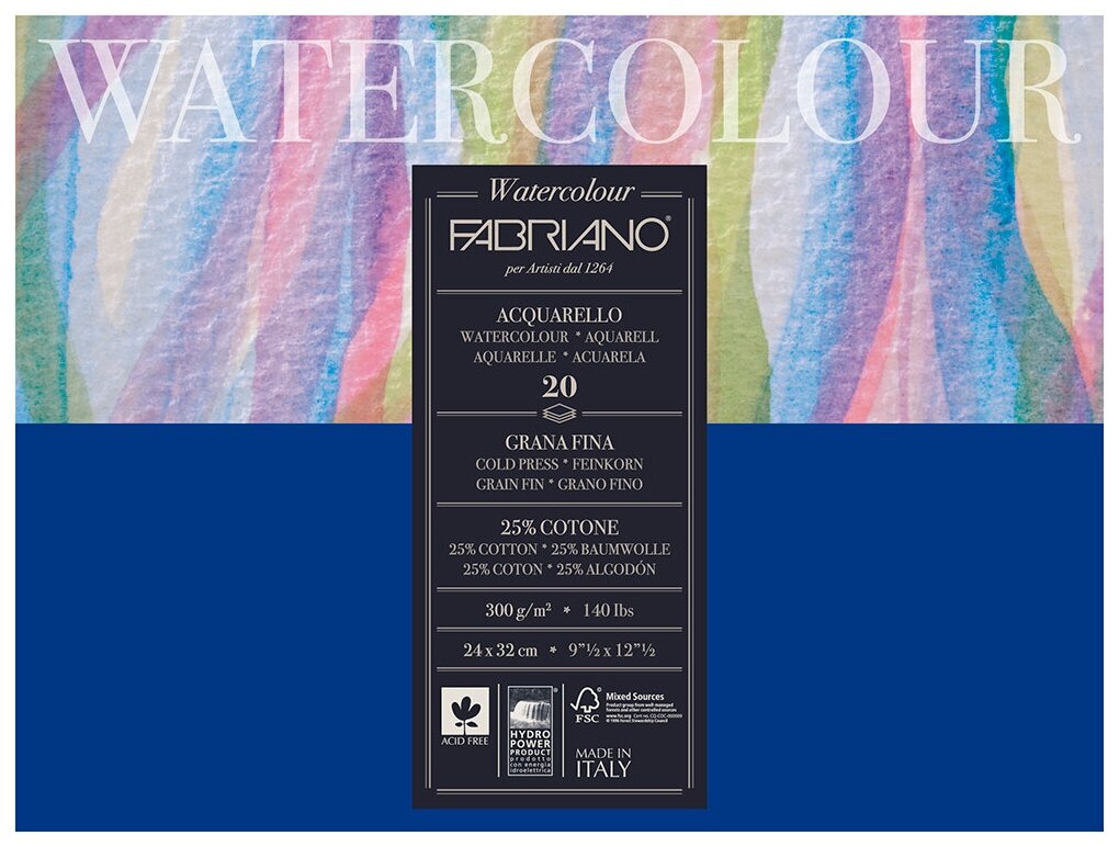Альбом-склейка для акварели Fabriano "Watercolour" 24х32 см 20 л 300 г (73612432) (размер: 240x320)