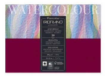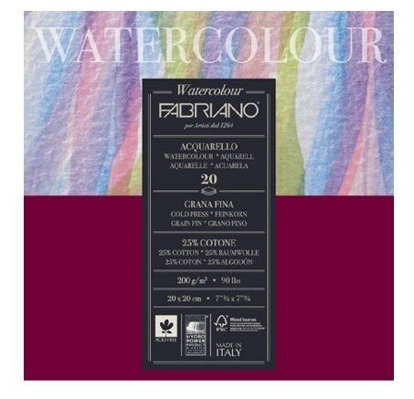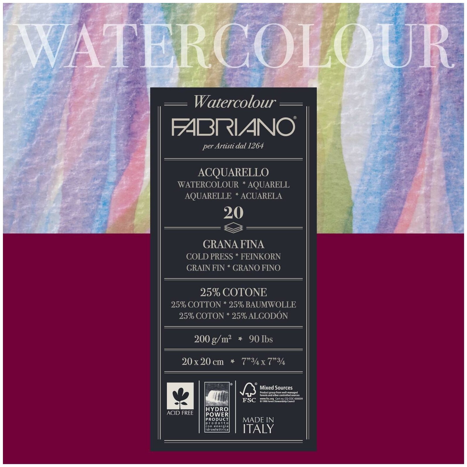 Блокнот-склейка для акварели Fabriano "Watercolour" 20*20 см (открыктки) 20 л 200 г 25% хлопок (72612020) (размер: 200x200)