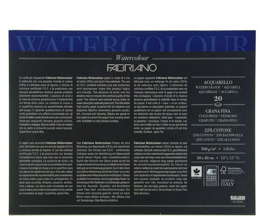 Сервис сравнения цен СкидкаГИД предлагает сравнить цены на товар «Альбом-склейка для акварели Fabriano "Watercolour" 30х40 см 20 л 300 г (73613040)»
