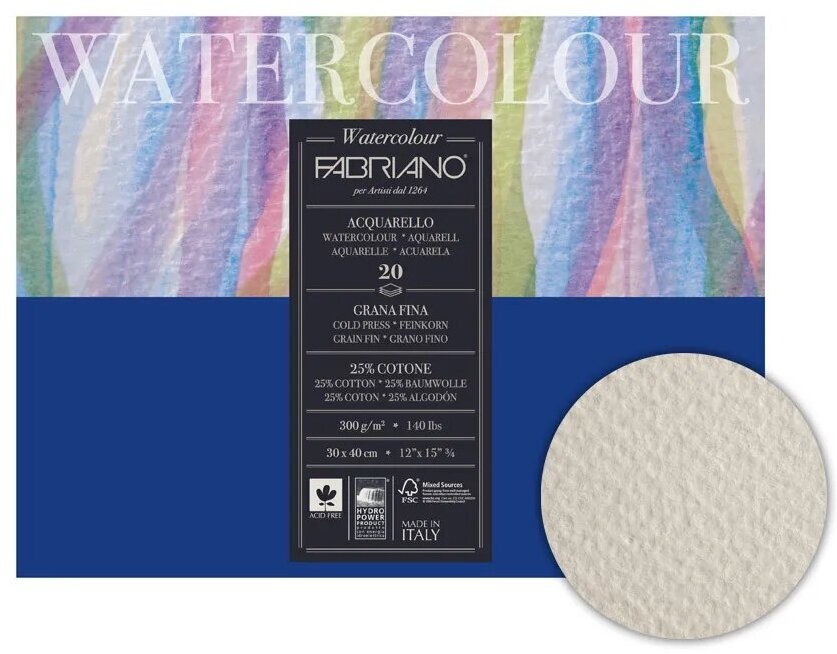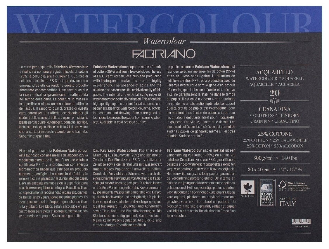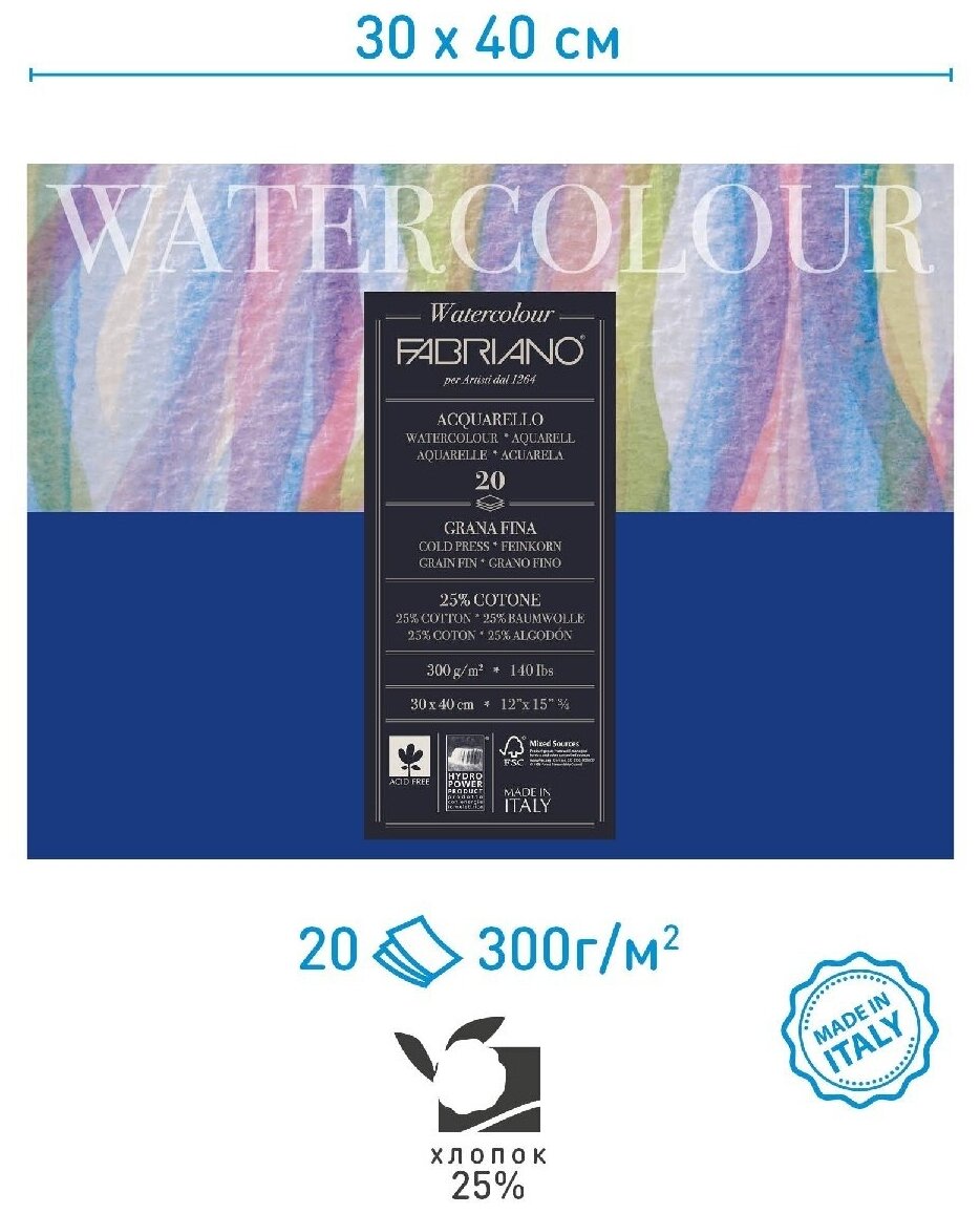Альбом-склейка для акварели Fabriano "Watercolour" 30х40 см 20 л 300 г (73613040)