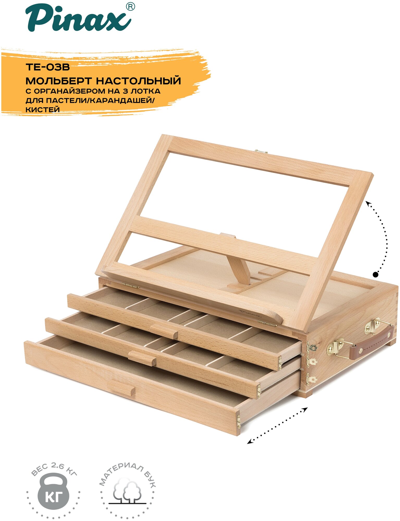 Мольберт настольный Pinax TE-03B с органайзером для пастели/карандашей/кистей 3 лотка бук