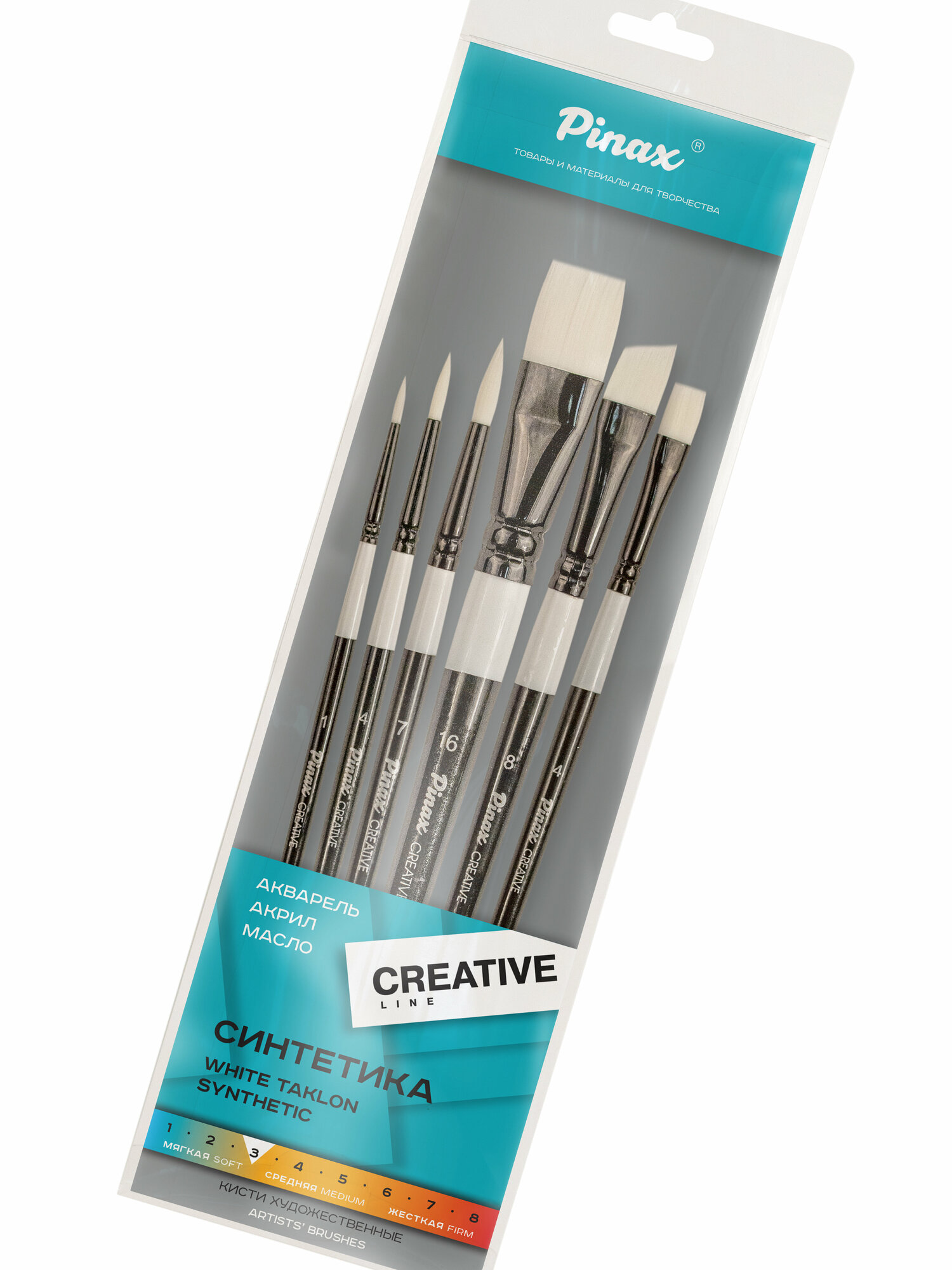 Набор кистей белая синтетика Pinax "CREATIVE White Taklon" АССОРТИ 6 шт (set23-6pc)