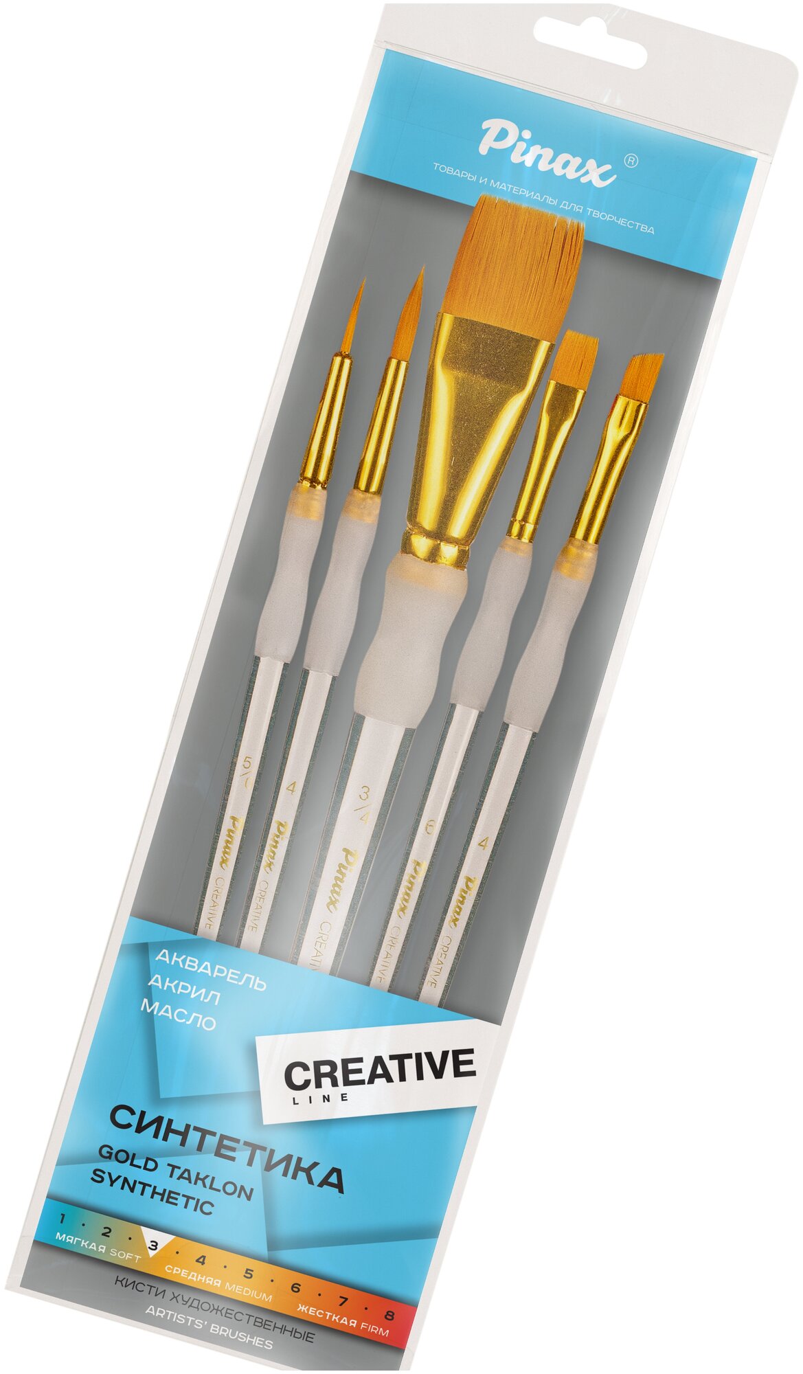 Набор кистей синтетика Pinax "CREATIVE" АССОРТИ 5 шт эргономичная ручка (set40-5pc)