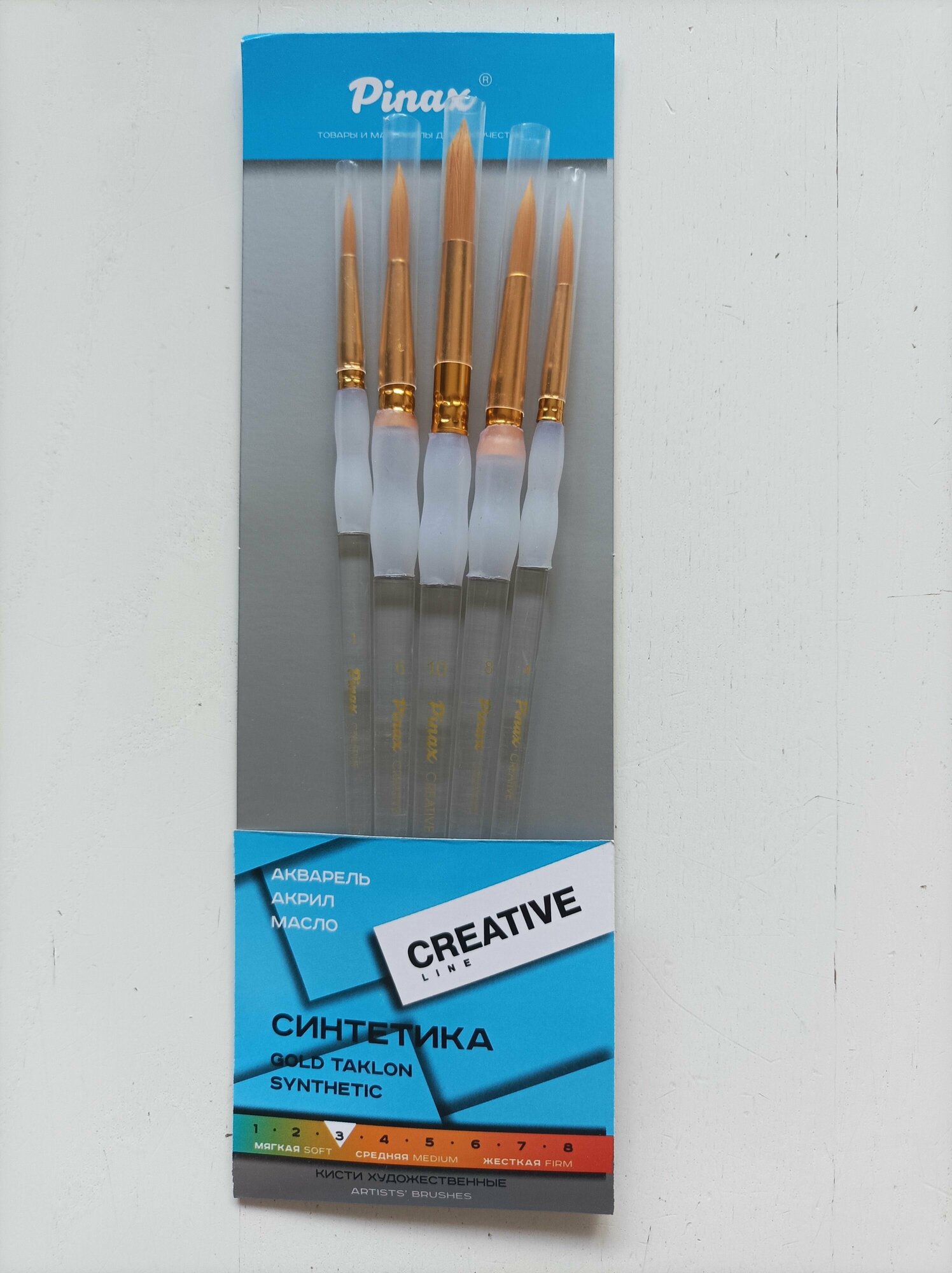 Набор кистей синтетика Pinax "CREATIVE" круглые 5 шт эргономичная ручка (set43-5pc)
