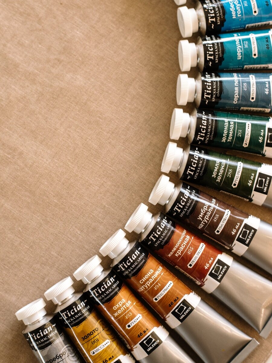 Художественное профессиональное масло "Малевичъ" изготовлено из высококачественных светостойких пигментов и натурального очищенного льняного масла. Содержание пигмента и масла специально сбалансировано таким образом, чтобы получить идеальную консистенцию для живописи.
