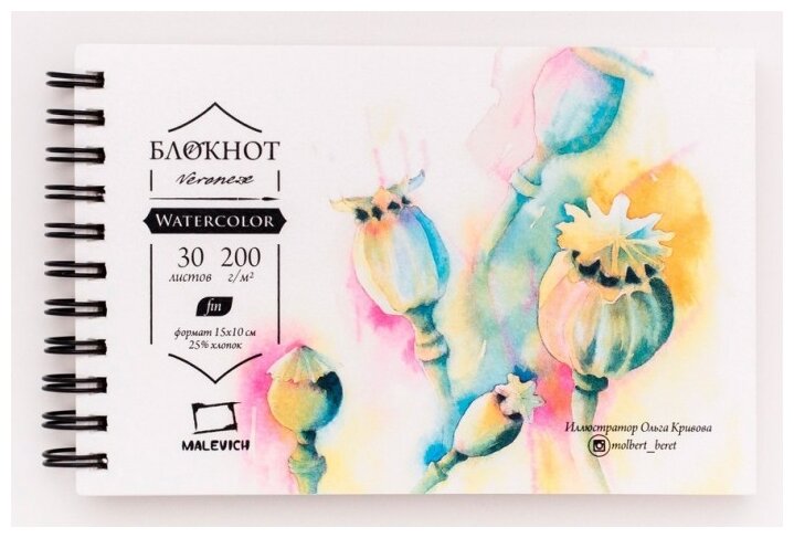 Блокнот для акварели Малевичъ "Veronese" Fin 10х15 см 30 л 200 г (МЛ-401462) (размер: 100x150)