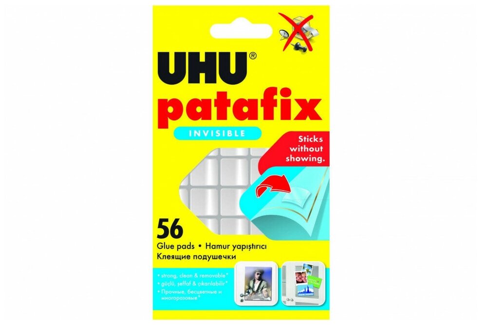Клеящие подушечки UHU Patafix. Предназначены для четкого и быстрого крепления не тяжелых предметов на разных поверхностях. Подходят для использования на стекле и зеркалах.Цвет: прозрачный.