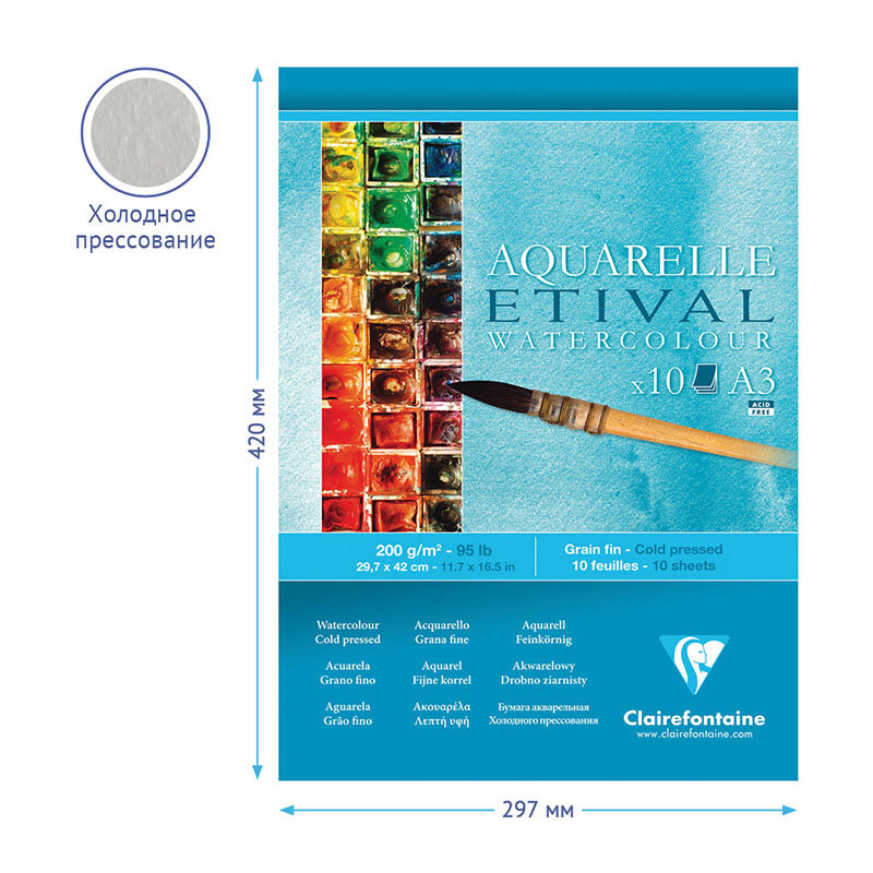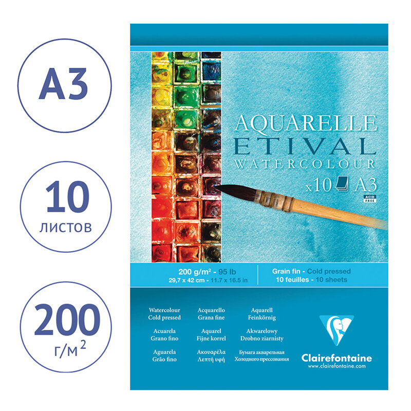Блокнот для акварели склейка Clairefontaine "Etival" (96303C) (размер: 297x420)