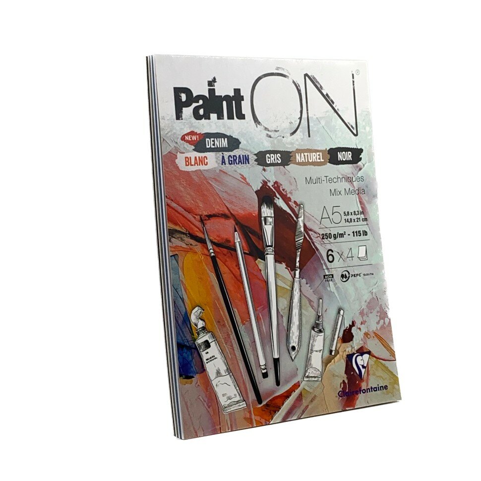 Альбом-склейка для смешанных техник Clairefontaine "Paint'ON" А5 24 л 250 г 6 цветов (975409C) (размер: 148x210)