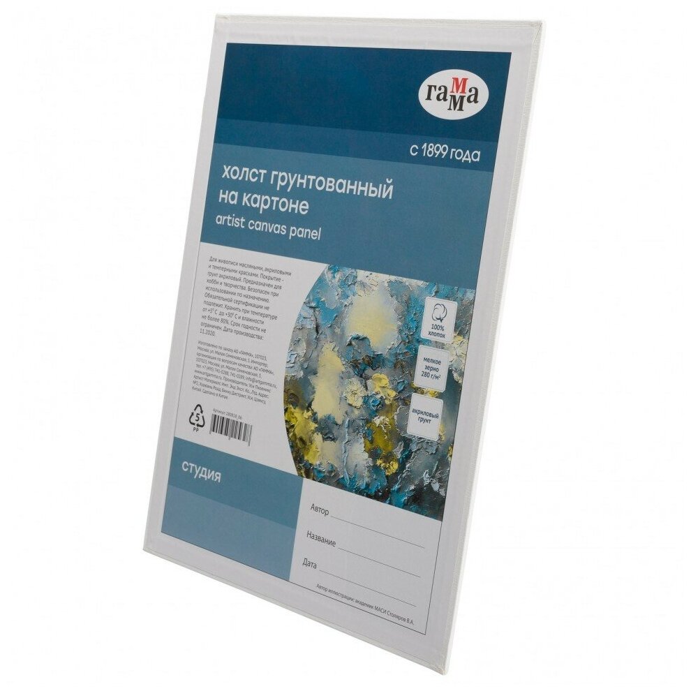 Холст грунтованный на картоне Гамма "Студия" 40х60 см (ГМ-280818_10) (размер: 400x600)