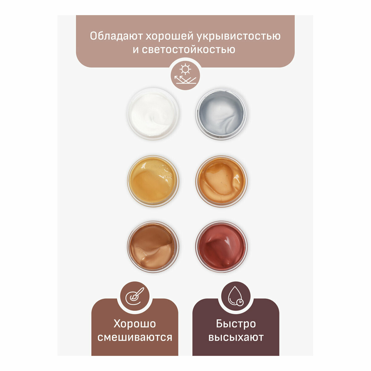Набор акрила декоративный Гамма "Хобби" 6 цв*20 мл металлики (ГМ-180120225)