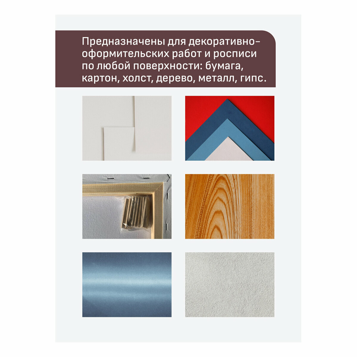 Декоративные акриловые краски металлик серии "Хобби" предназначены для декоративно-оформительских работ и росписи по любой поверхности (бумага, картон, холст, дерево, металл, гипс), обладают хорошей укрывистостью и светостойкостью, хорошо смешиваются, быстро высыхают. Имеют интенсивный металлический блеск. Благодаря удобной герметичной баночке с завинчивающейся крышкой, краски долго хранятся, не высыхая. Морозостойкие. Объем баночки - 20 мл.