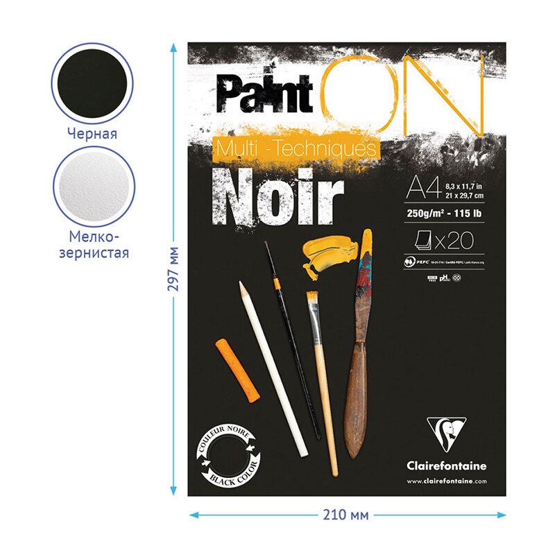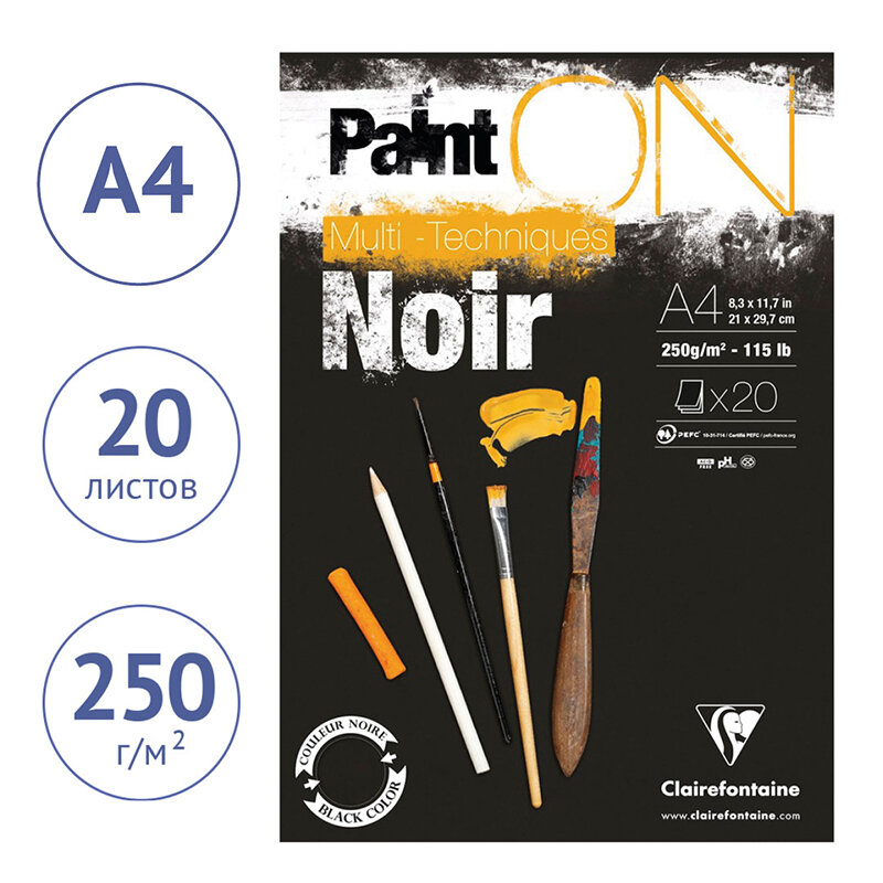 На сегодняшний день товар «Альбом-склейка для смешанных техник Clairefontaine "Paint'ON Noir" А4 20 л 250 г черный (975169C)» можно купить с кешбеком в 1 магазине: Арт-маркет "Красный Карандаш"
