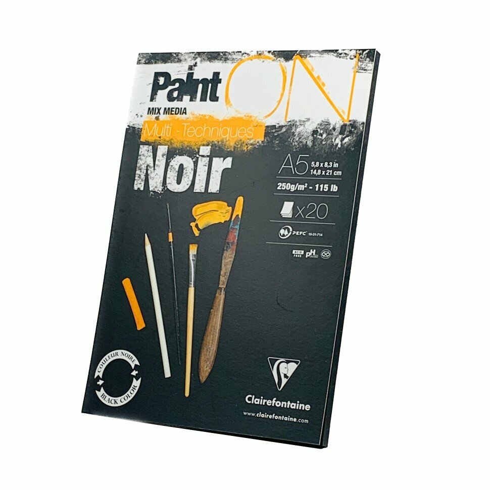 Альбом-склейка для смешанных техник Clairefontaine "Paint'ON Noir" А5 20 л 250 г черный (975168C)