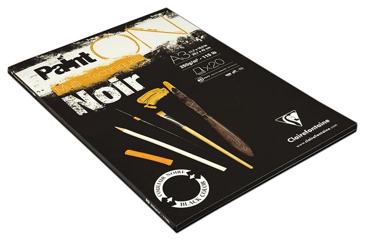 Альбом для смешанных техник Clairefontaine Paint'ON Noir на склейке. Плотность блока: 250 г/кв.м. Размер: 297*420 мм. Текстура внутреннего блока: зернистая. Материал обложки: картон. Альбом для смешанных техник Paint'ON – лучшая линейка от французского производителя Clairefontaine. Бумага имеет хорошую поглощающую способность и адаптирована к сухим методам рисования (карандаш, фломастер), а также к мокрым техникам (гуашь, акрил). Вид крепления – склейка, позволяет легко отделить лист с готовым рисунком.