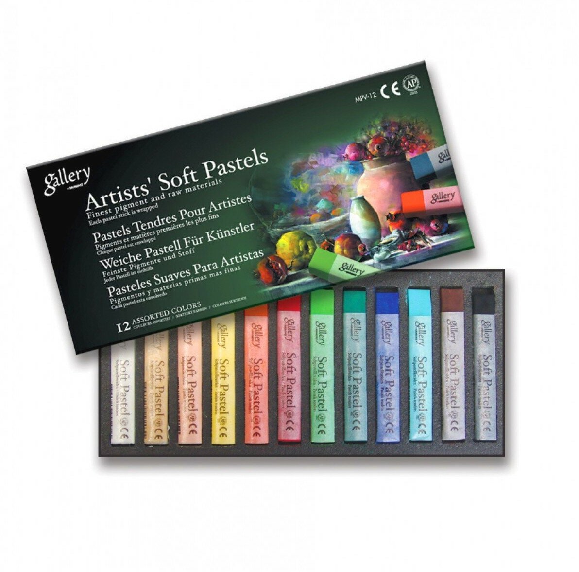 Набор сухой пастели Mungyo Gallery "Soft pastel" 12 цв мягкая квадратная в картонной коробке (MGMPV12)